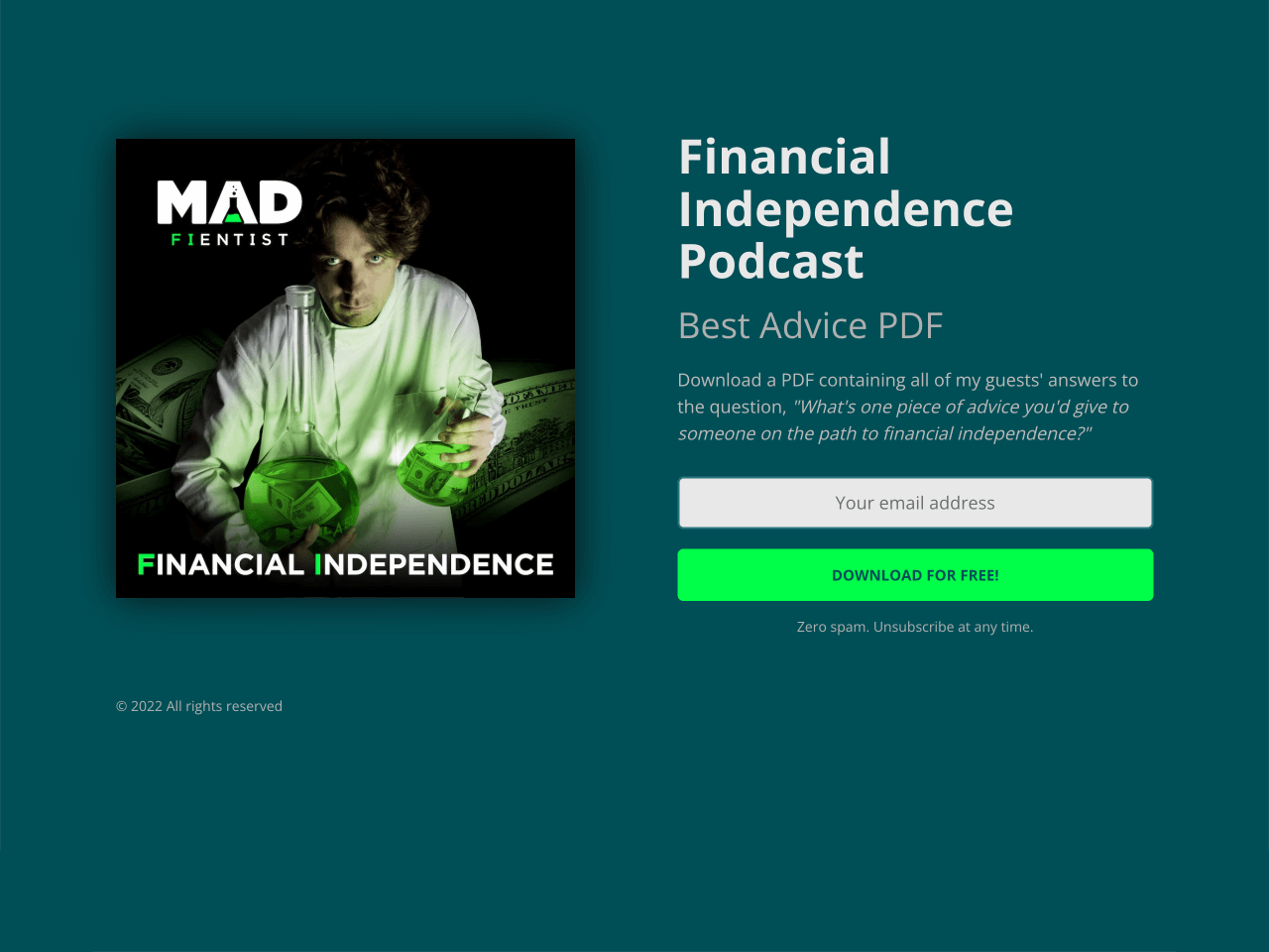 New subscribers receive a PDF with advice from podcast guests — a compelling lead magnet that appeals to the target audience. If you plan to deliver downloadable guides like this, it’s a good idea to compress the PDF first, so the file is smaller and faster for subscribers to download.