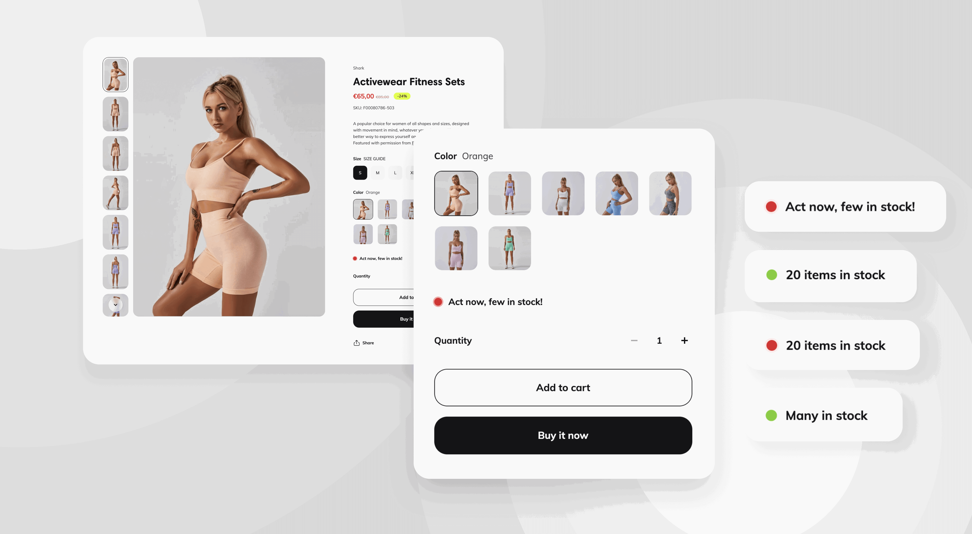 Inventory status is a powerful tool in scarcity marketing. You can choose to display the number of items left in stock right on the product pages or encourage shoppers to act faster if a product running low.