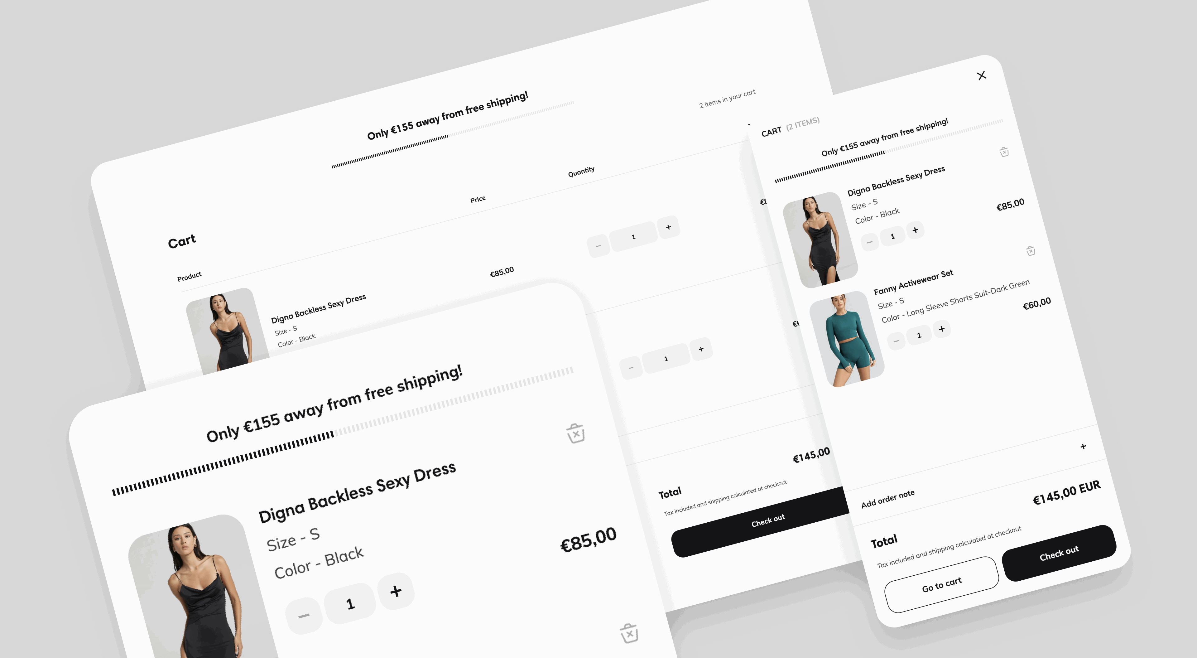 If you want to incentivize customers to add more items to their cart and reach the minimum order value, the free shipping countdown does just that. It allows shoppers to easily track how much they have left to spend to qualify for free shipping, increases your average order value, and improves the overall shopping experience.