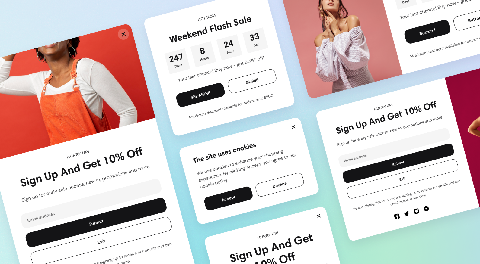 Boost sales and product visibility, offer irresistible discounts, and get more email subscribers faster.