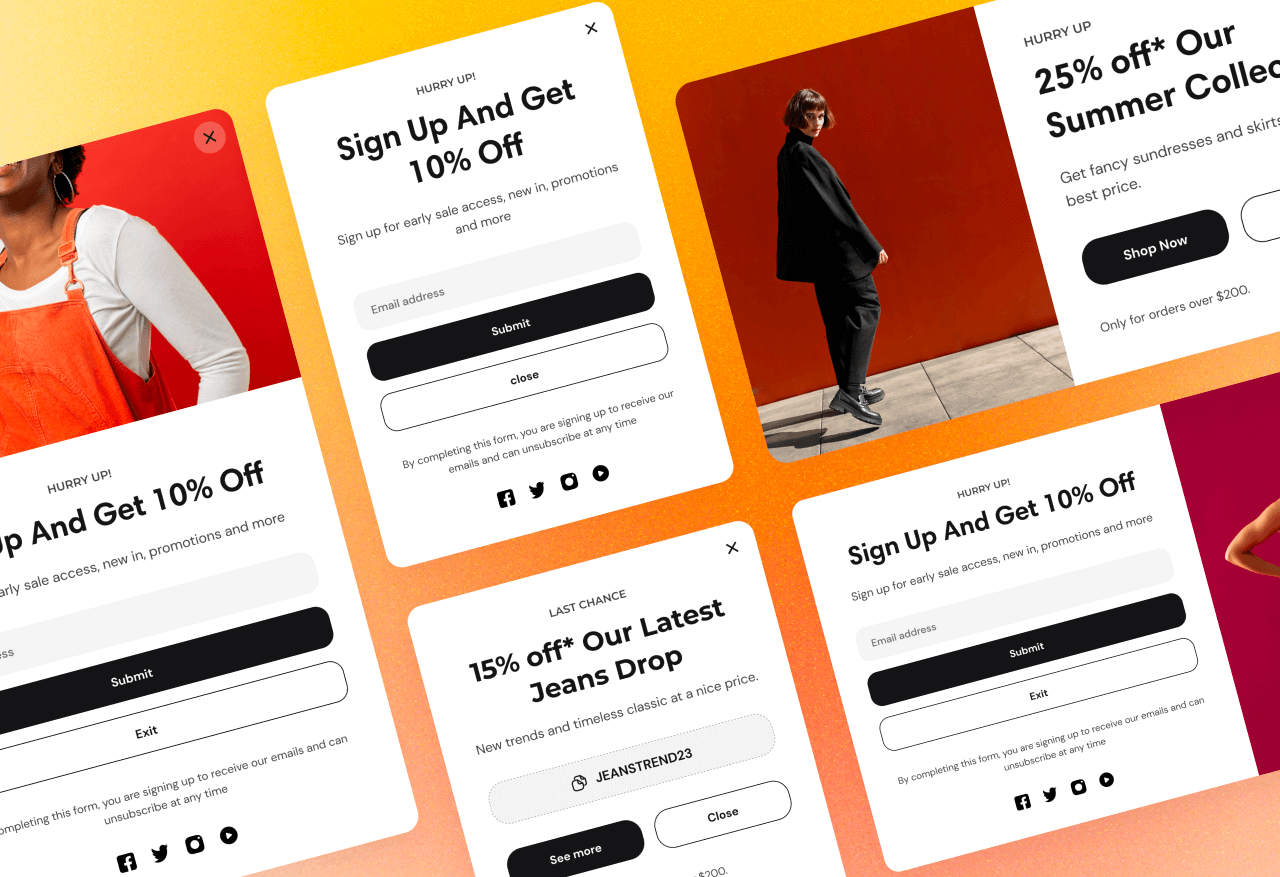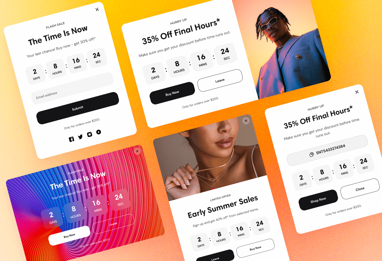 Pop-up countdown timers will help you generate a sense of urgency or build anticipation for a sale – or any other important event, such a new collection drop.