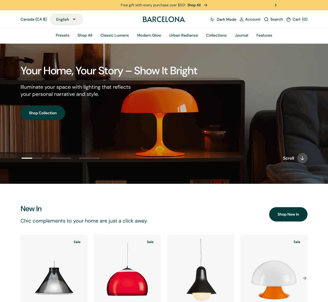 Like its namesake, Apparent Collective’s Barcelona Shopify theme evokes a warm, vibrant emotion. It’s perfect for new home decor merchants with a smaller product catalog who need a premium, optimized storefront for their online space.