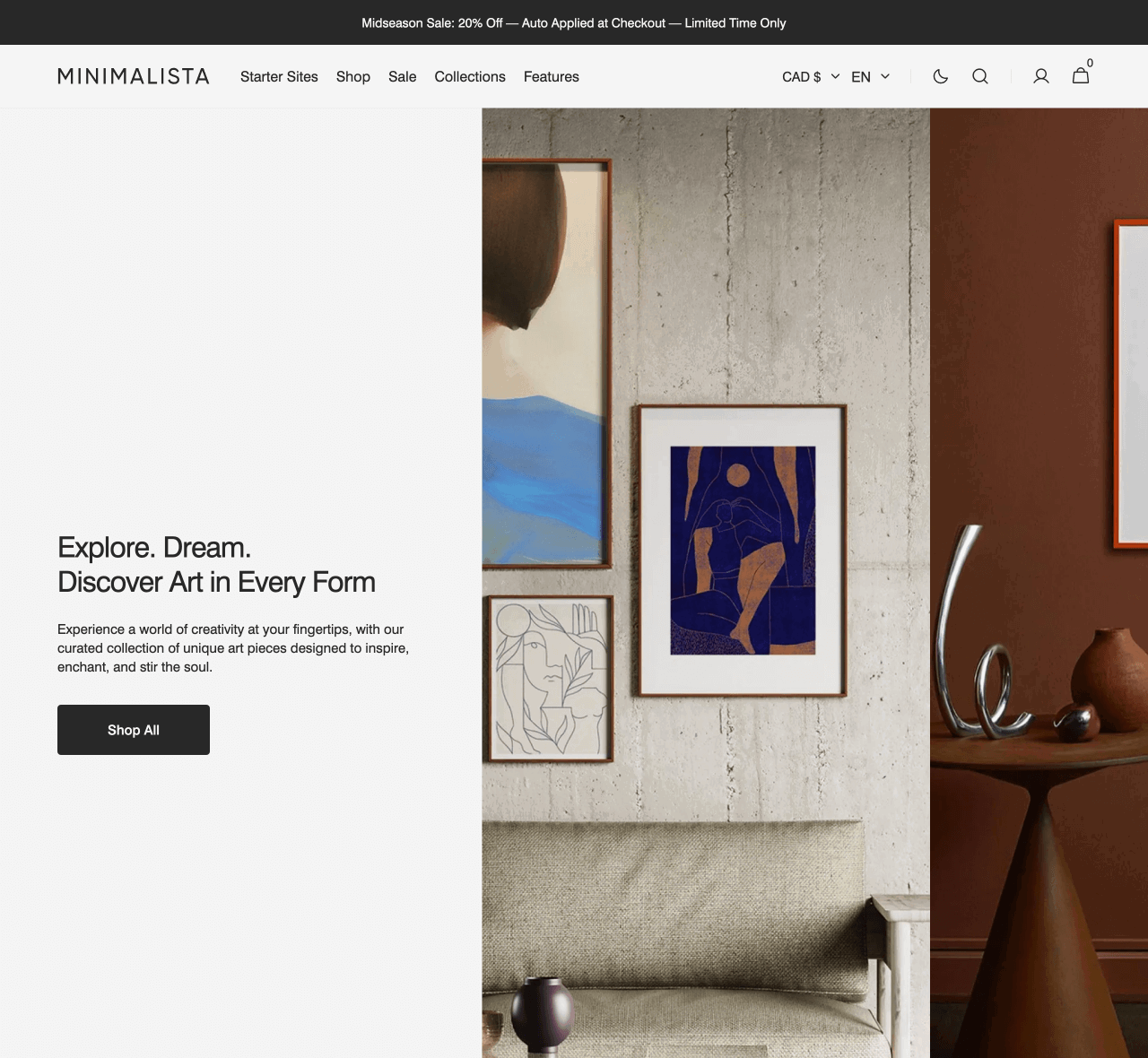 Do you favor natural elements or subtle color schemes for your home decor store? Perhaps you’re looking for a Shopify theme that reflects a less-is-more ideology to accompany your products. Minimalista by veteran developers Segment, proves stylish website design can be quiet and unassuming – and might be exactly what you need.
