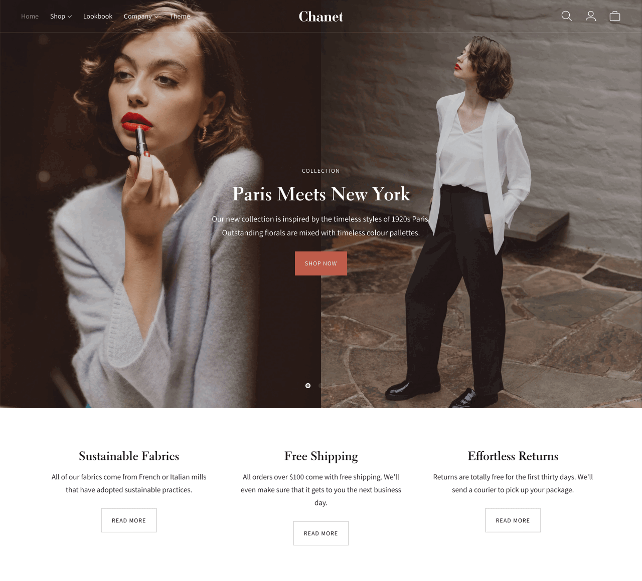 Testament aims to support visual brand storytelling with image-centric features and dynamic layout options – meanwhile features like pre-order and in-store pickup make the theme particularly well-suited for brands engaged in in-person selling.