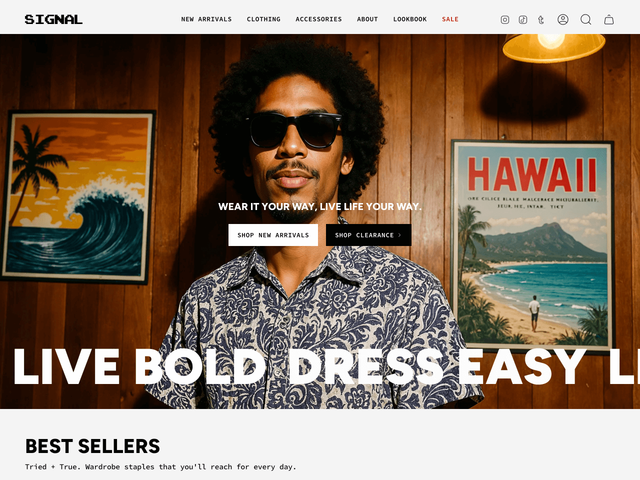 Venue is a striking Shopify theme designed with streetwear and lifestyle brands in mind. With its bold fonts, dynamic layout options, and modular content blocks, it creates a strong visual identity while giving merchants full control over the storefront.