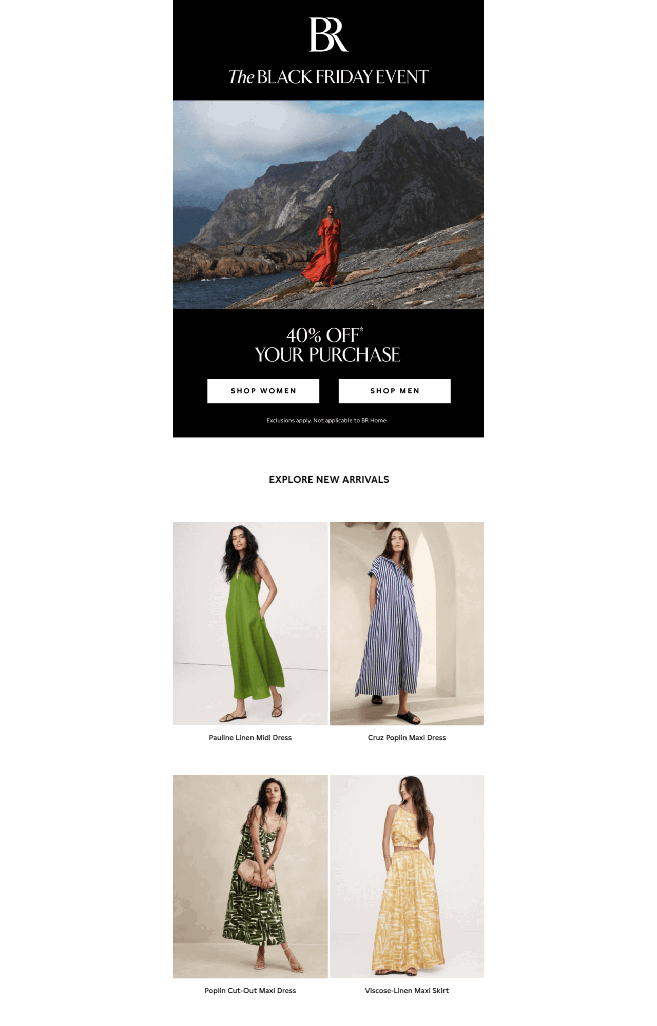 The Banana Republic marketing team also chose to feature new arrivals in the Black Friday email campaign, making sure they’re also personalized to the subscriber’s preferences (women’s clothes, in this case).