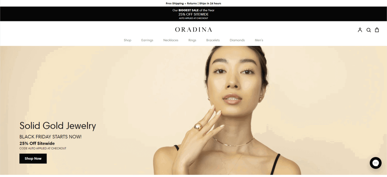 On the other hand, you can make your early Black Friday offers available to all of your store visitors and announce them both through social media ads, emails, and on-site banners. For example, Oradina, a jewelry brand, made Black Friday discounts available on the website a week before the actual Black Friday date.
