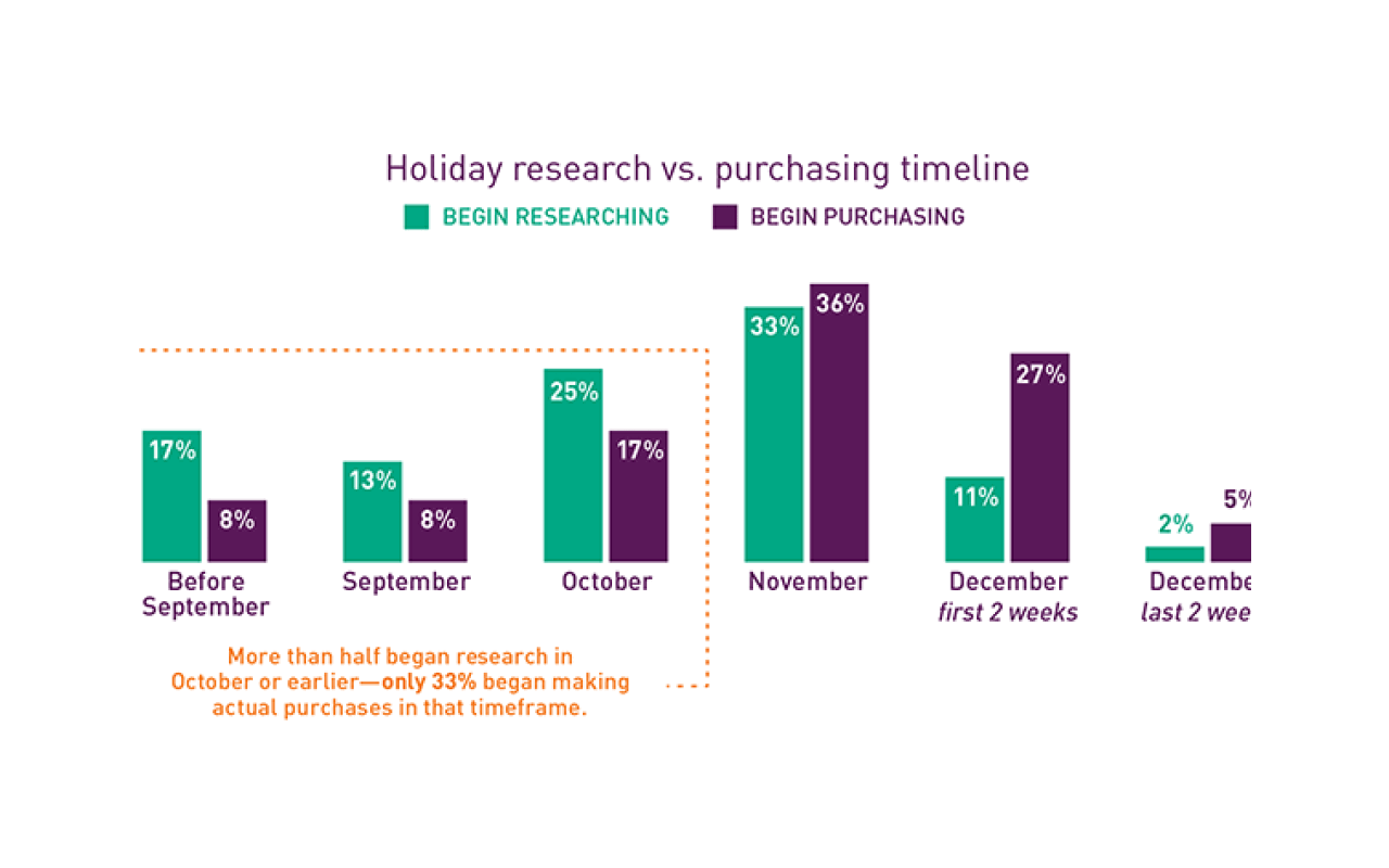 The National Retail Federation found that more than half of holiday shoppers start to research and plan their gifts in October or earlier.