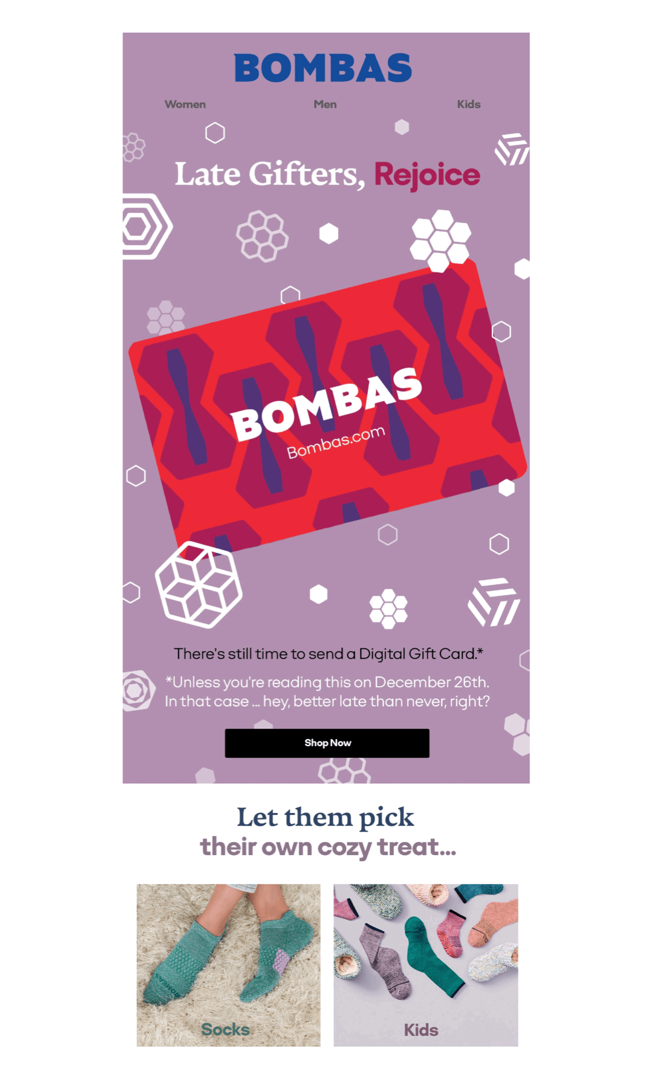 Send a dedicated gift card email, highlighting them as the perfect last-minute gift.