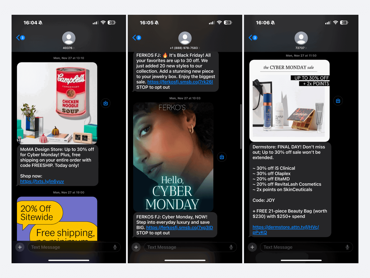 While email is essential, don’t overlook the power of SMS marketing, especially during time-sensitive events like Cyber Monday. Text messages have much higher open rates compared to emails, making them a great channel for last-minute reminders and exclusive offers.