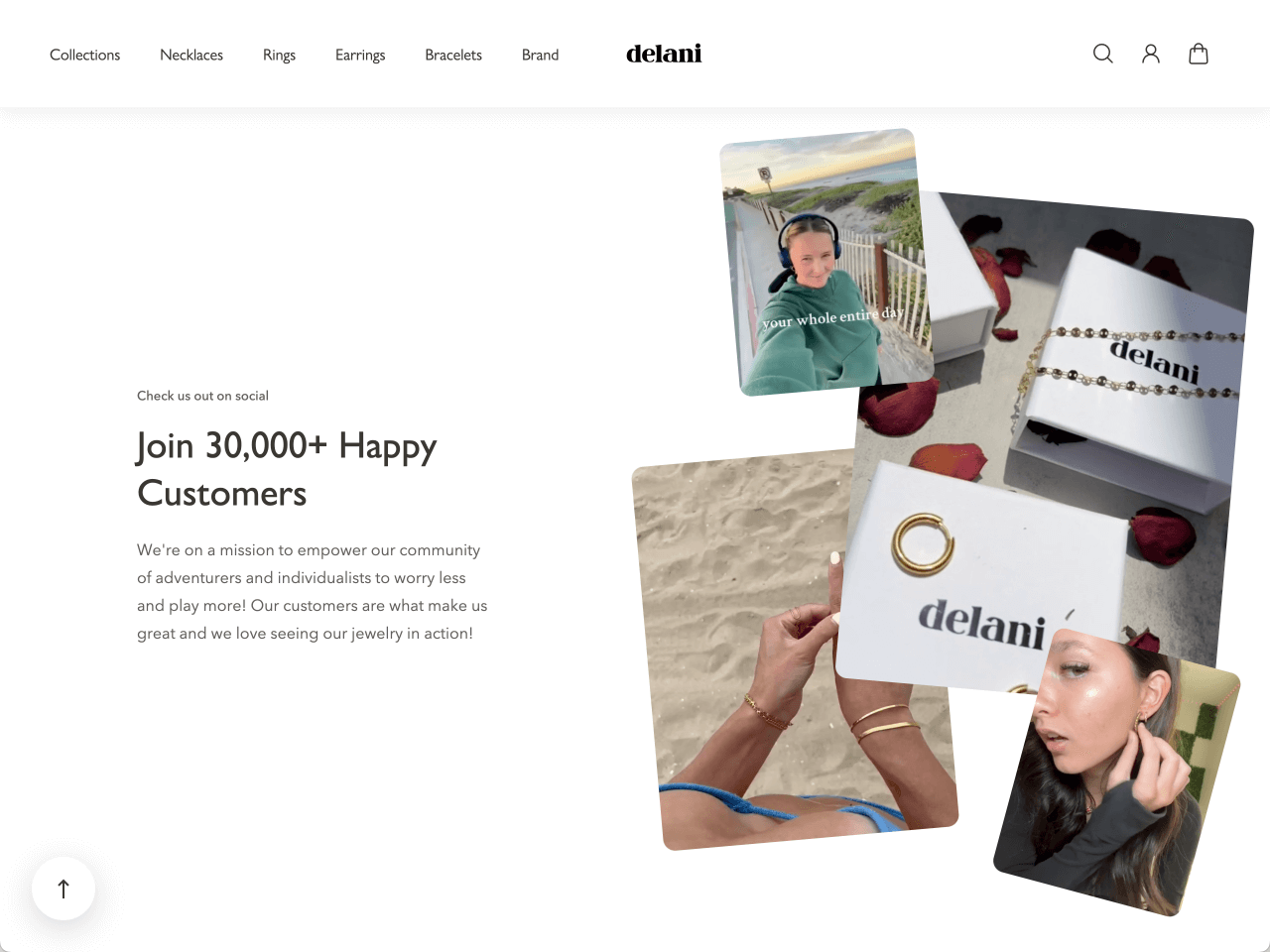 You can display UGC on product pages in a form of a social media gallery or as a collage like Delani Jewelry does.