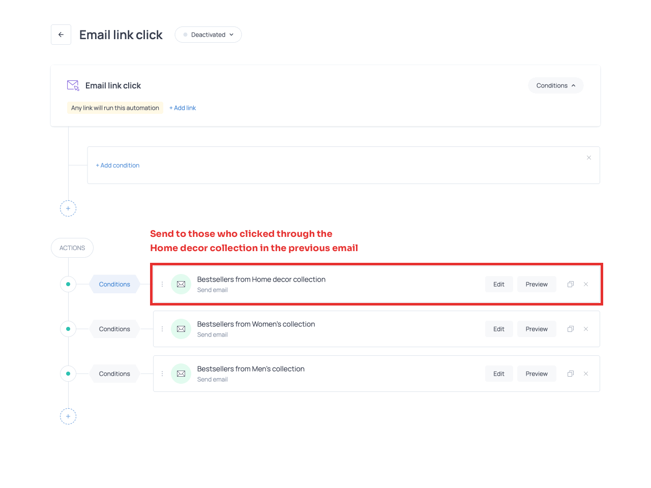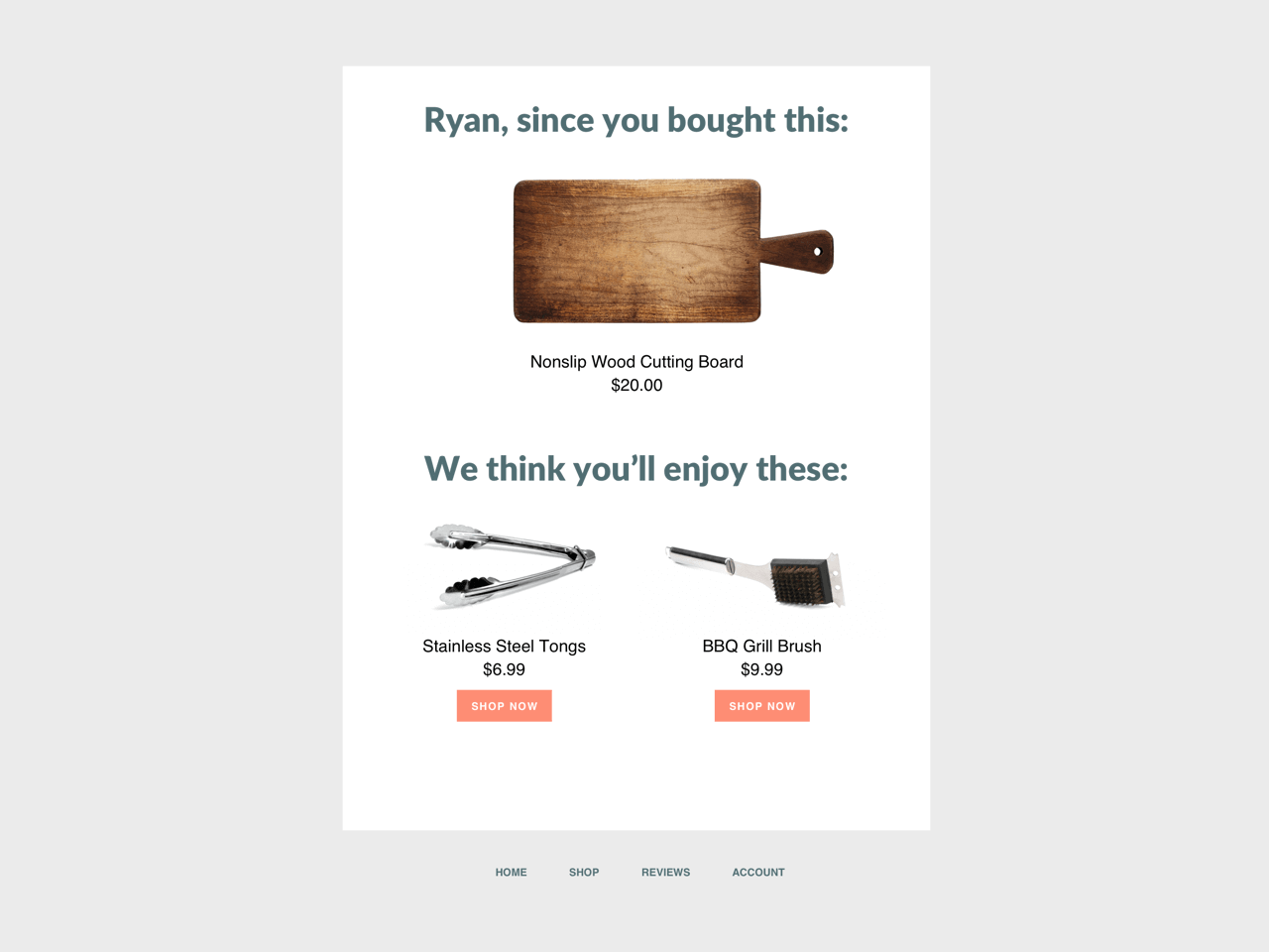 Send targeted email recommendations based on the products customers bought or clicked through in your previous emails.