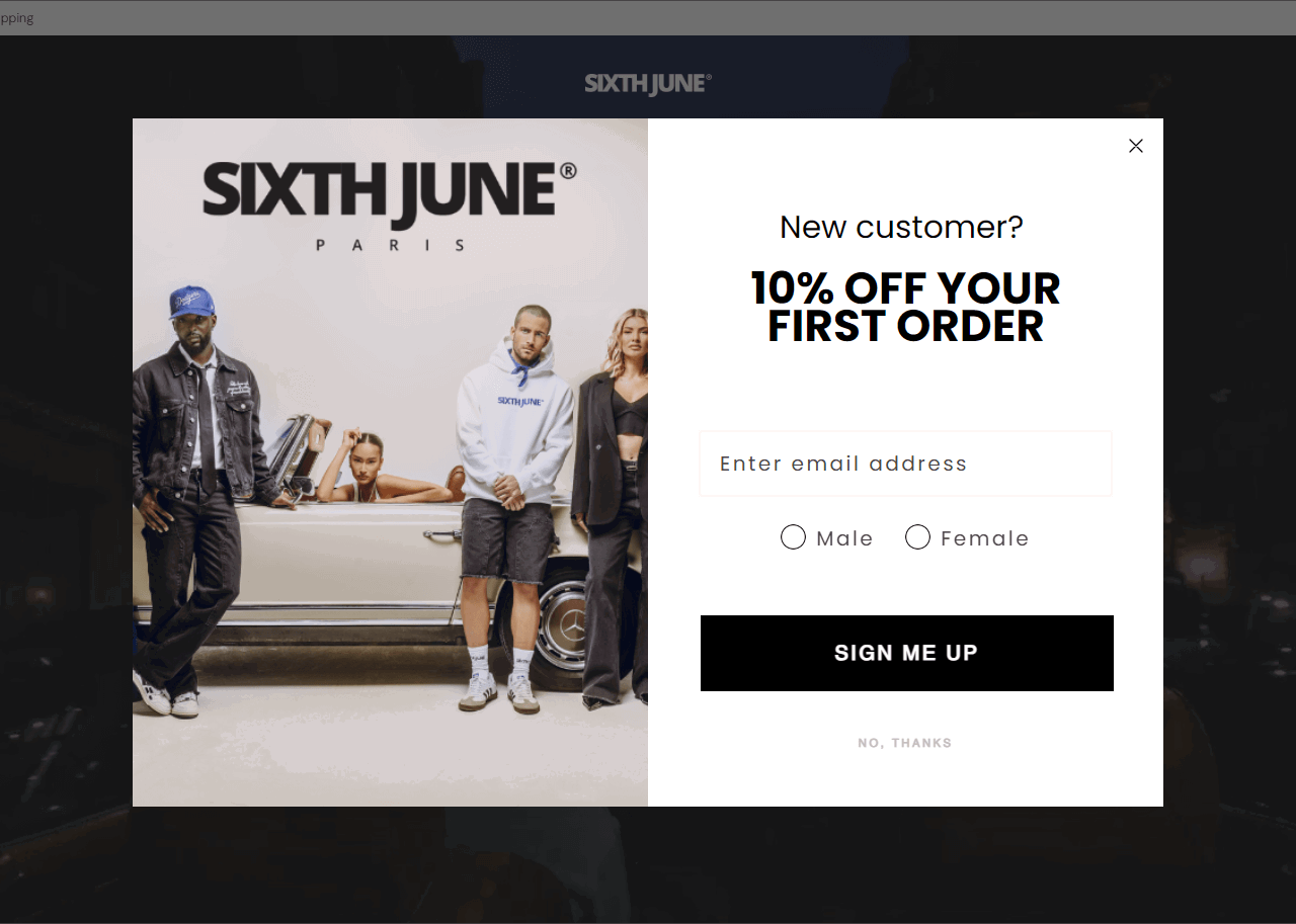 Fashion retailer Sixth June asks new subscribers to choose which product category interests them: male or female collection. This one extra field means every future email can be targeted to subscribers’ stated interests.