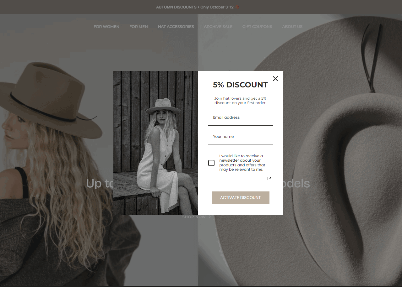 The popup on the Reverie Hats website checks all boxes and serves as an excellent example to learn from.