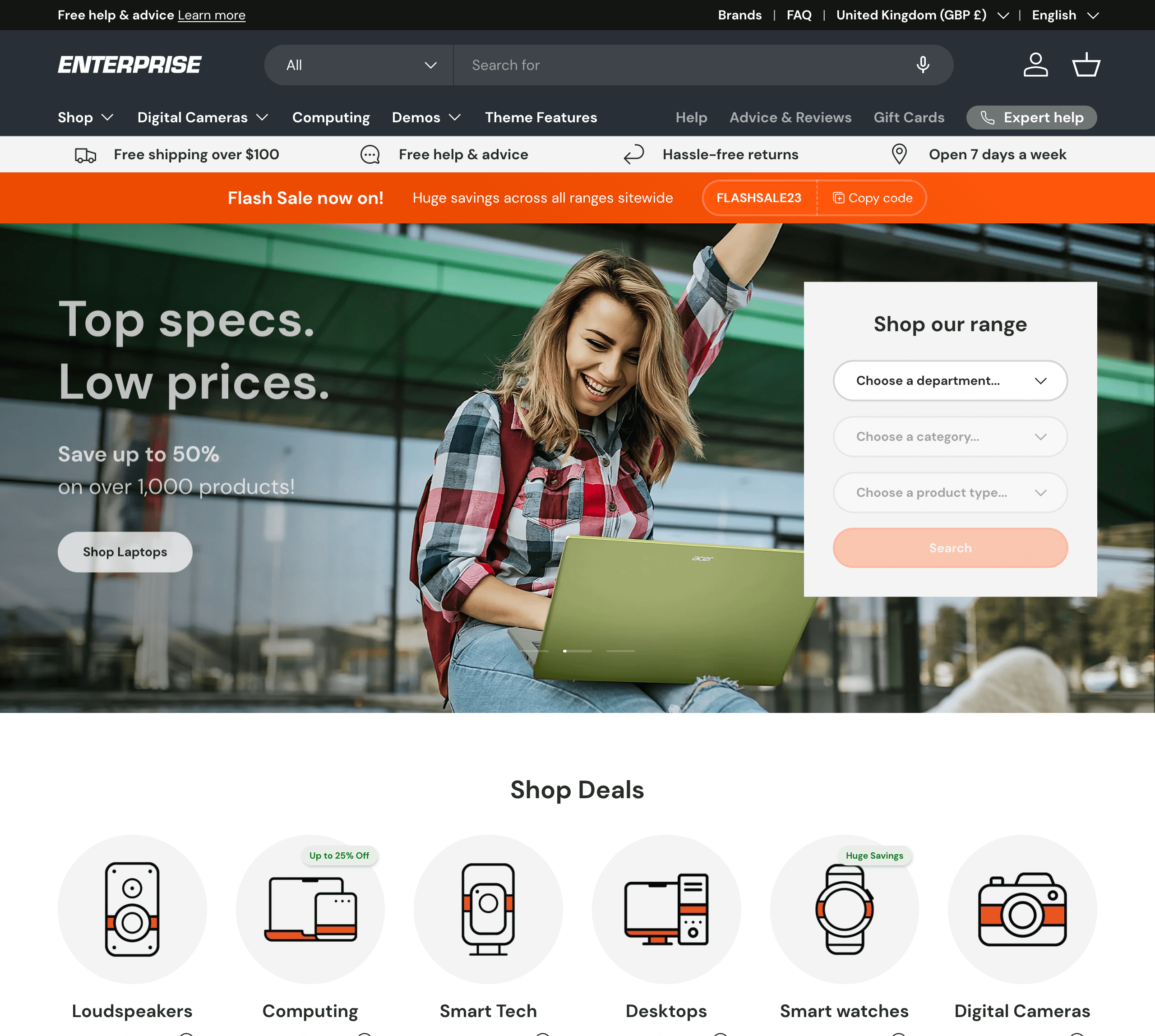 Enterprise is a smart pick for brands managing a large inventory or running a high-traffic store with time-sensitive promos. Built for speed and conversions, this theme avoids external libraries and bloated code to keep your store lightning fast, even at scale.