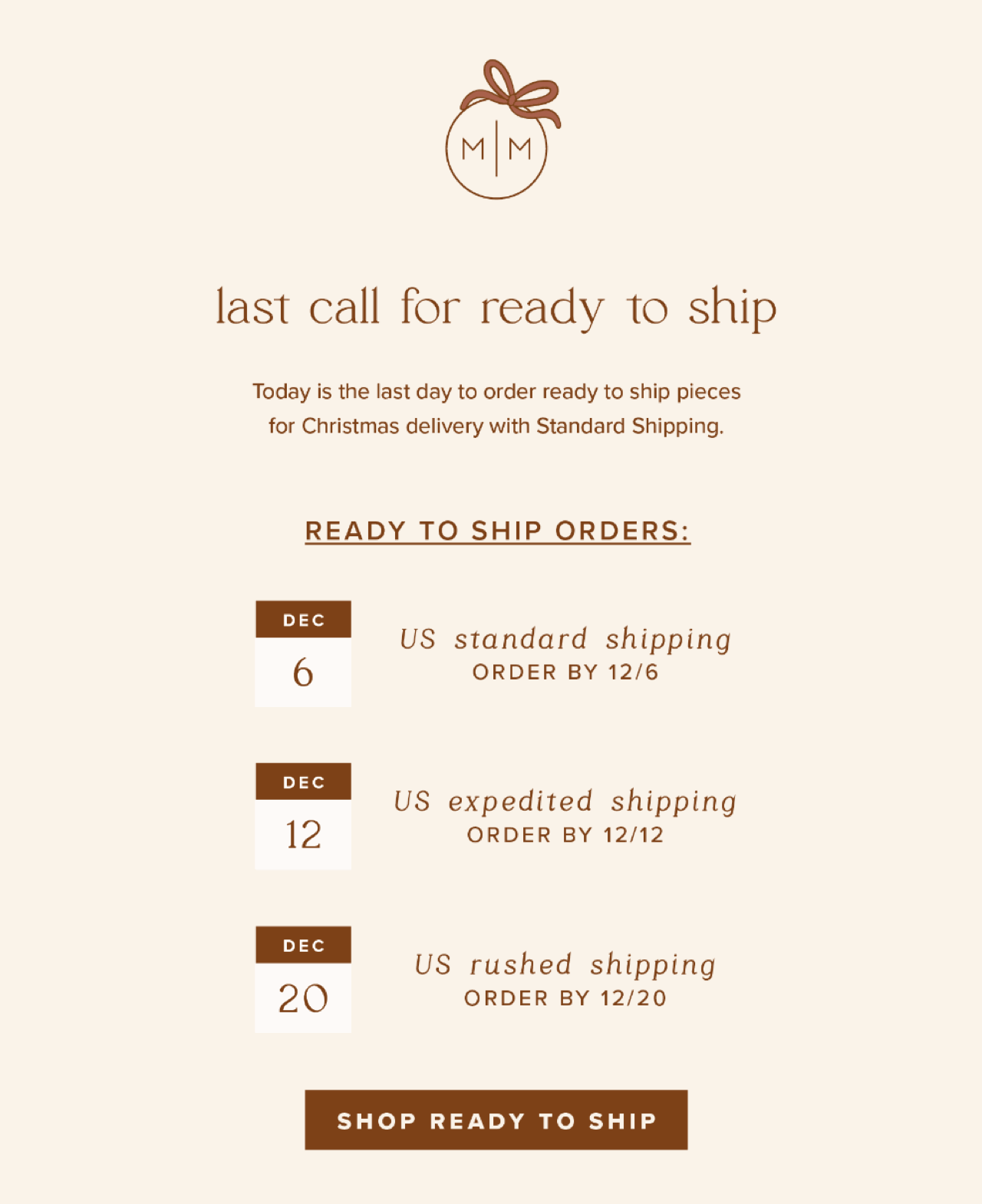 Made by Mary, in the example below, sends a clear shipping deadline reminder in mid-December.