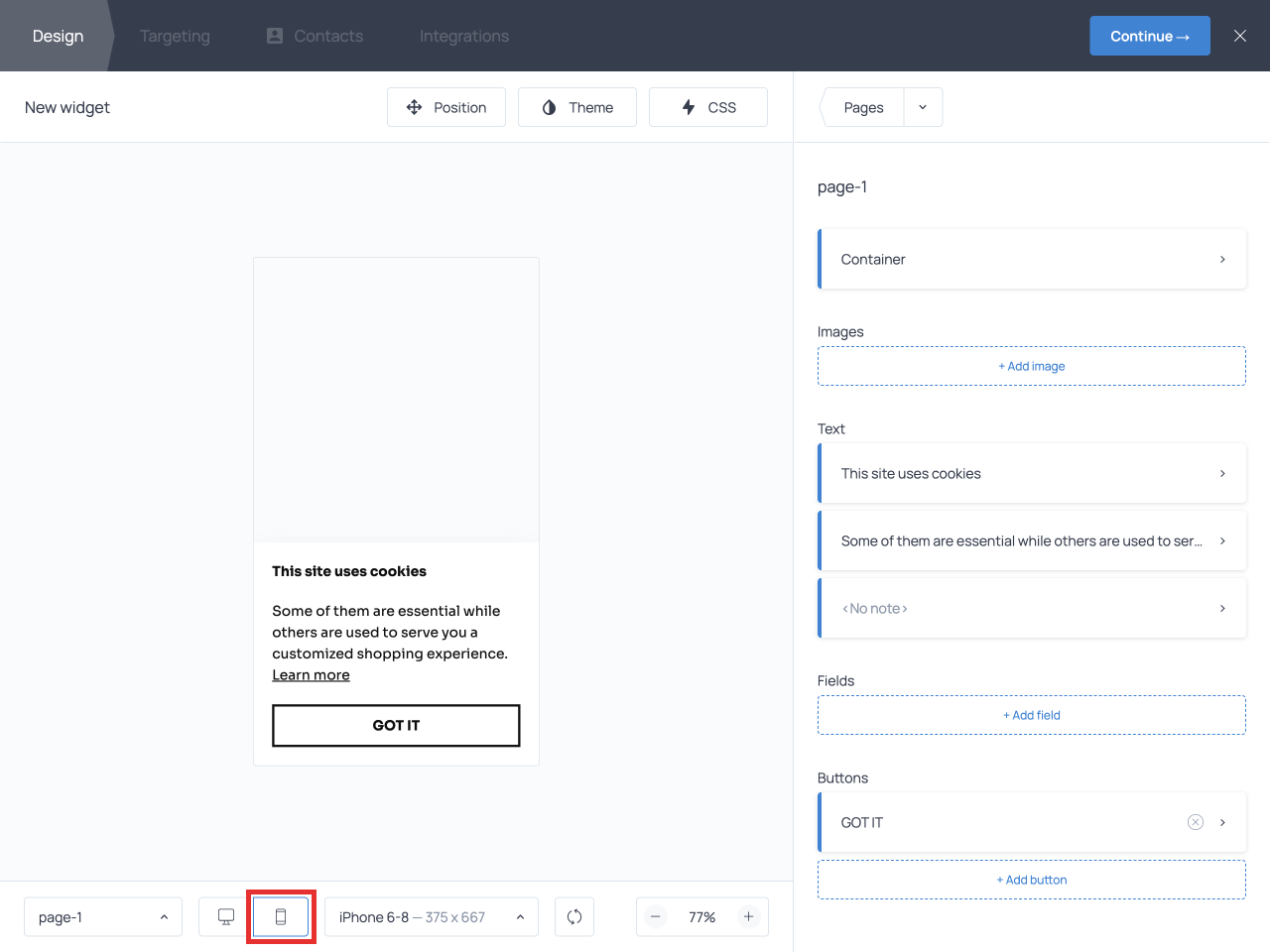To see how the banner will appear to mobile visitors, switch to mobile mode below the preview window.