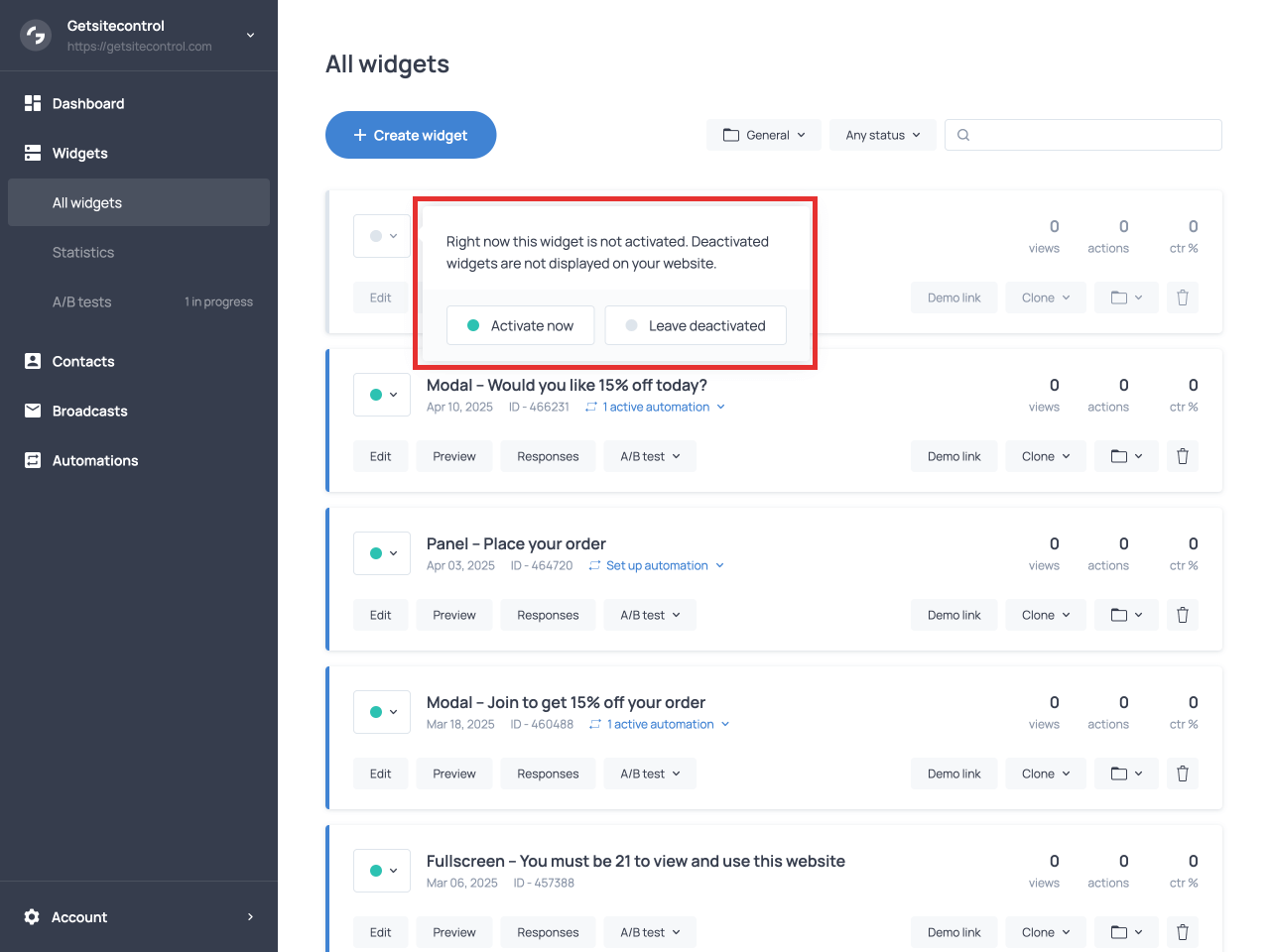 If you’re using WordPress, the simplest way is to use the official Getsitecontrol plugin. It will handle the integration for you. If you’re using Shopify, install the dedicated Shopify app to speed things up.