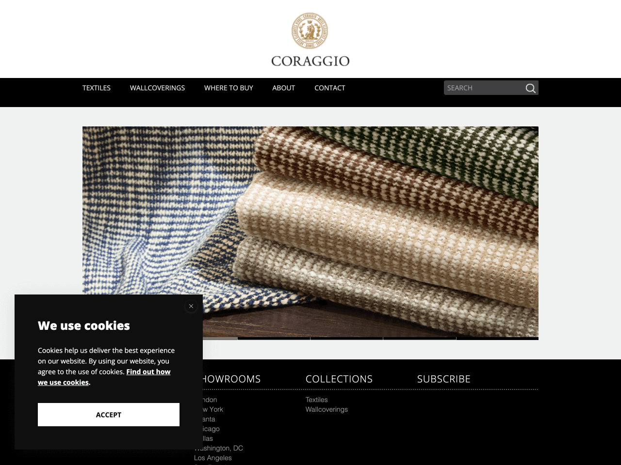 Coraggio uses a high-contrast slide-in banner that appears at the bottom left corner. The bold header and minimalist styling make the message clear and accessible.