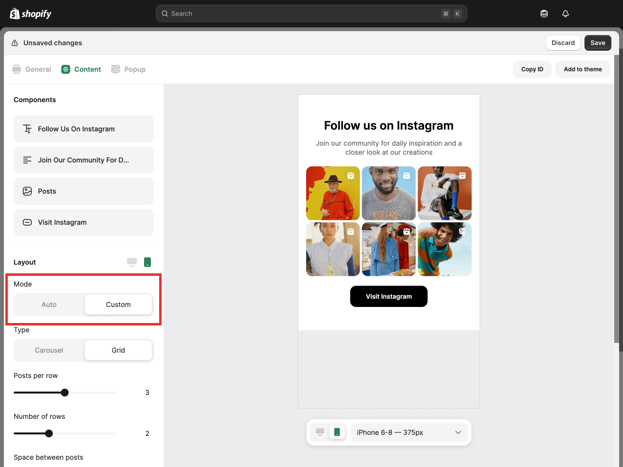 To complete the setup of your Shopify Instagram feed, save the changes in the theme editor.