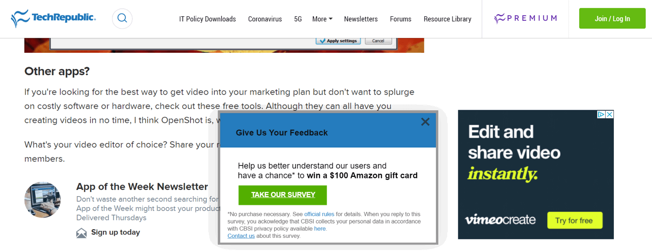 If you are using a pop-up survey that leads to another page, make sure this survey isn’t too long, either.