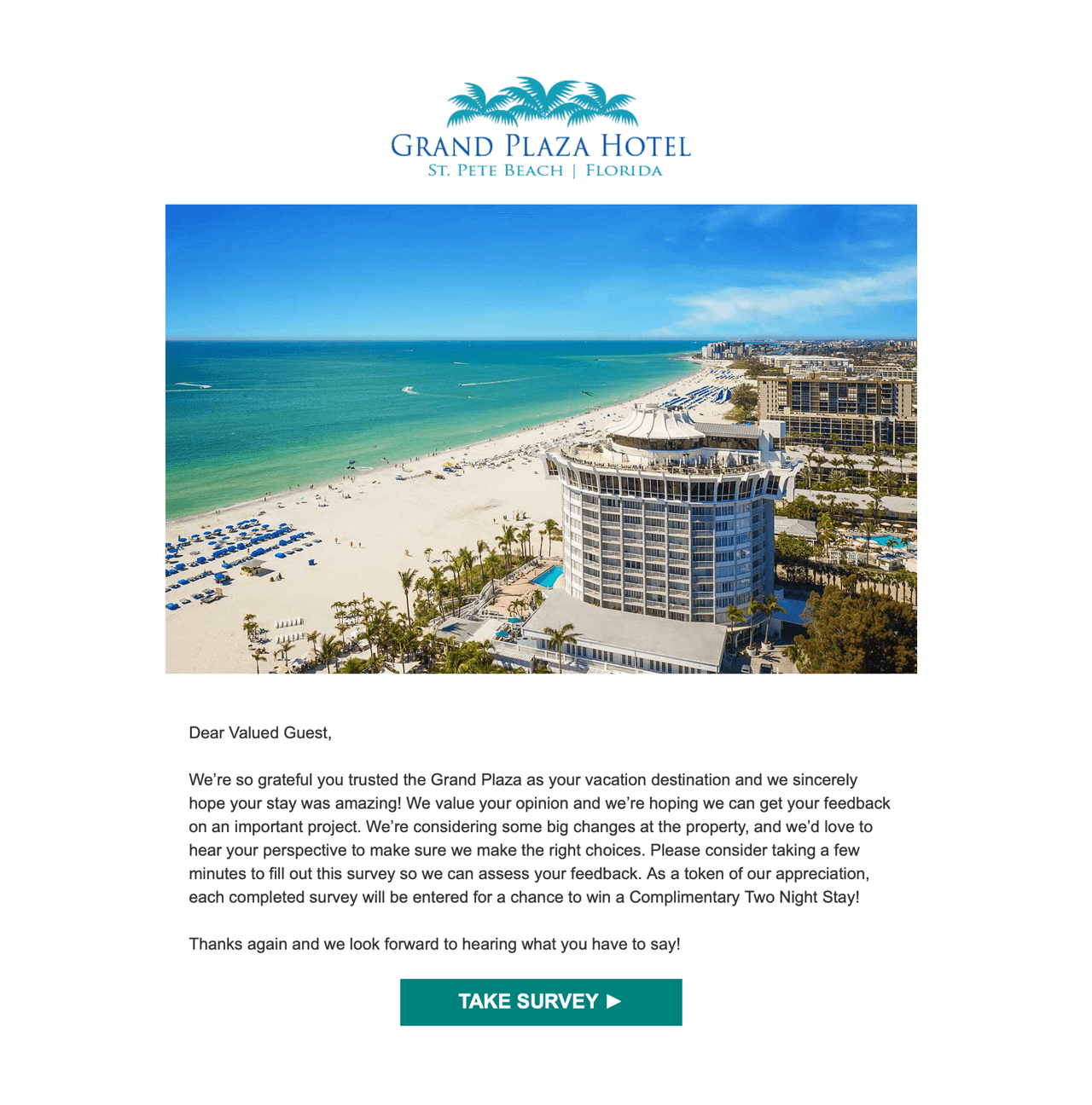 In the message you send along with the survey – whether that is via email, social media, or snail mail – let them know that you value their opinion. It can be as simple as writing “We value your opinion” or “We’d appreciate some feedback.”