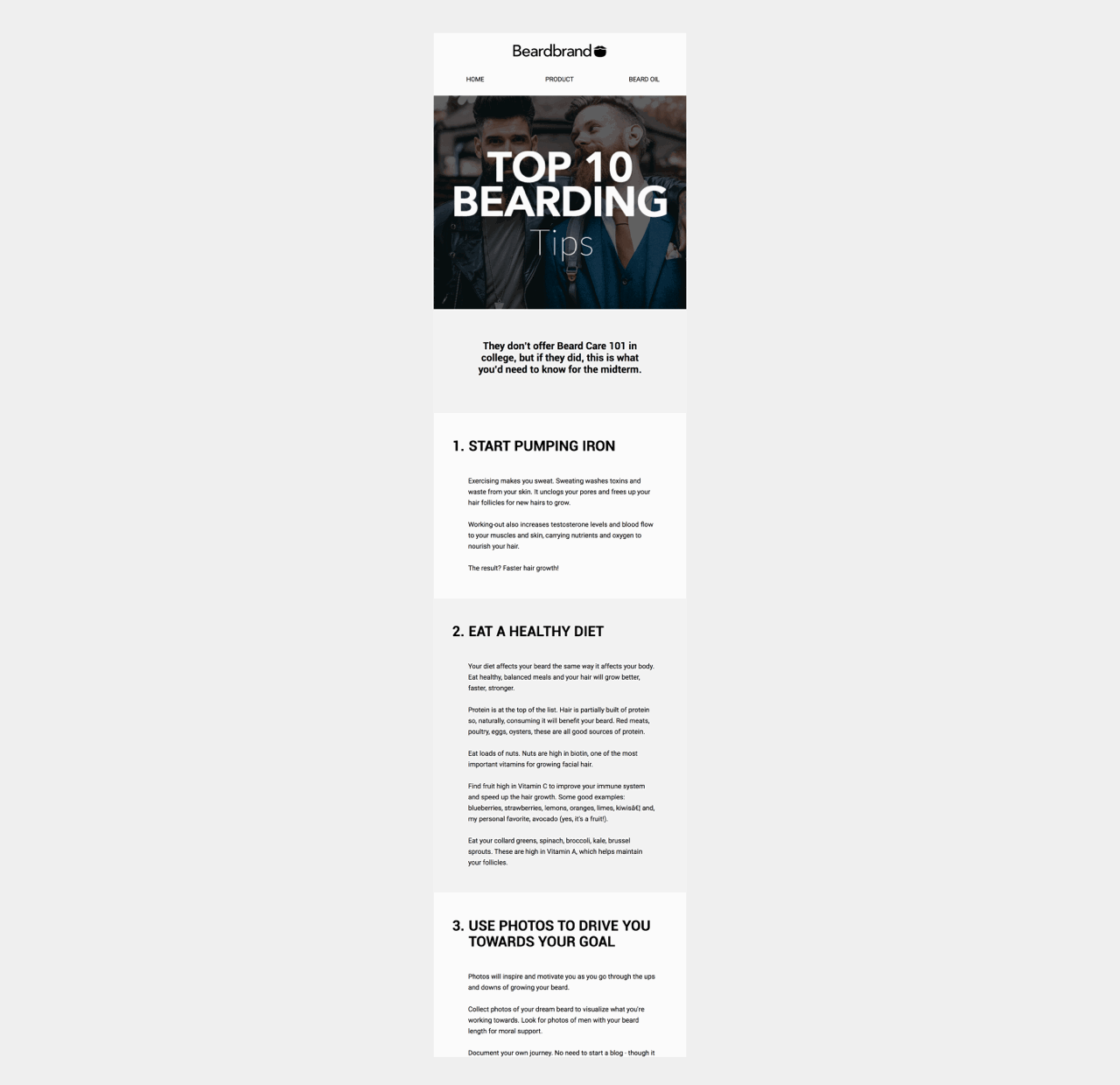 Finally, you need your brand to connect with your subscribers, transmitting your excitement to have them on your list, as Beardbrand does with their video and copy.
