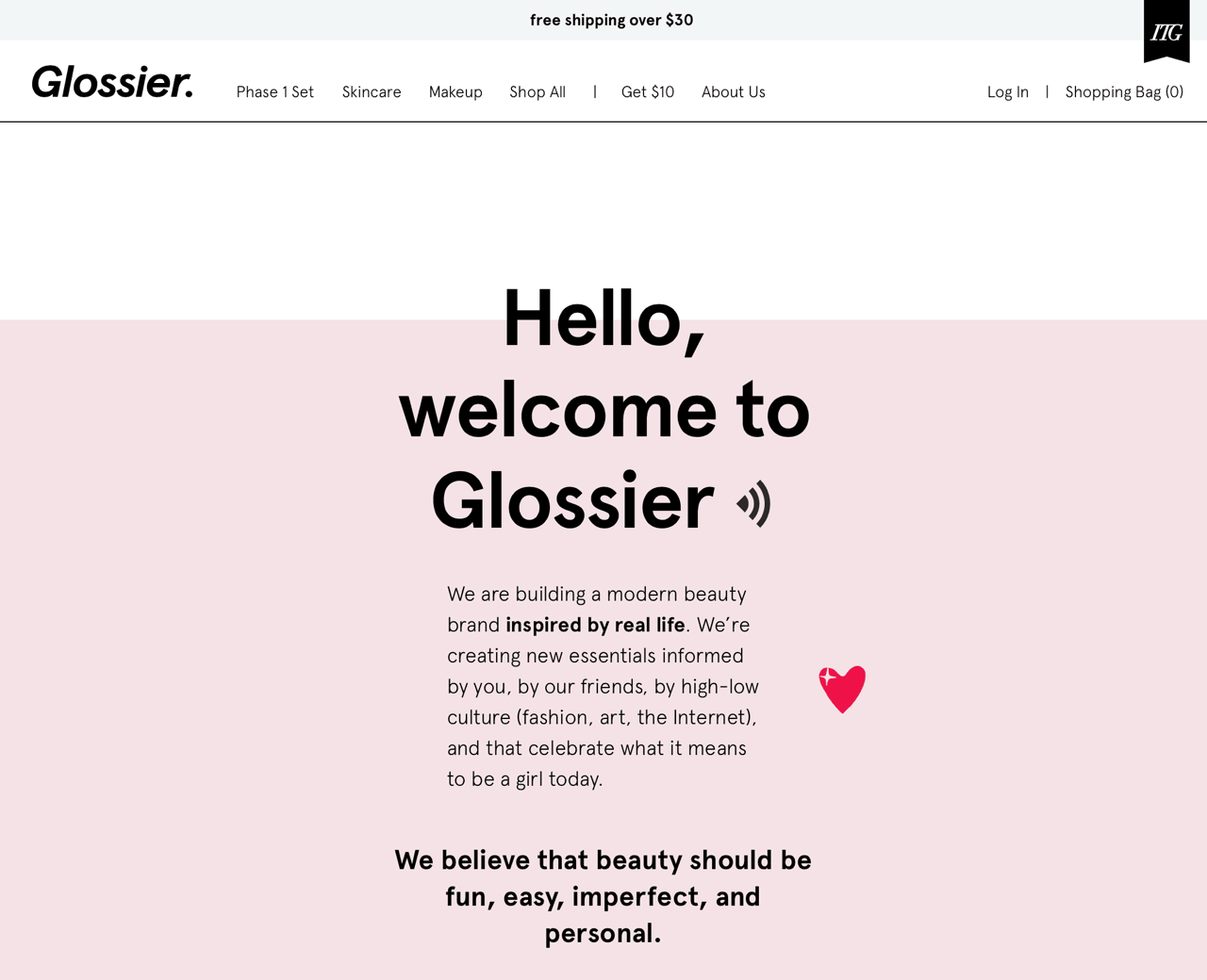 You need to welcome your subscriber to your brand, literally. Such is the previous case of Rue or Glossier, as shown below.