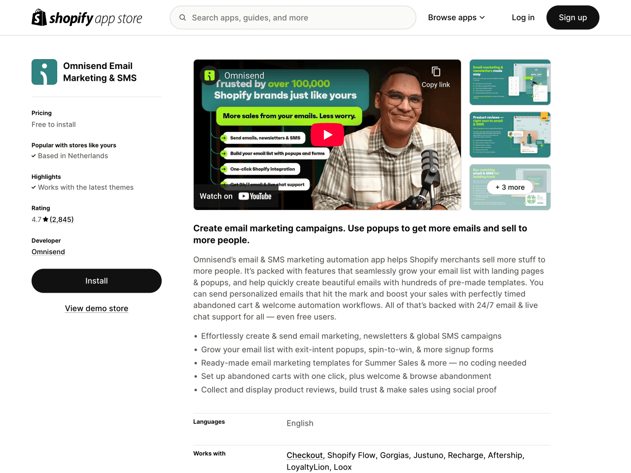| Omnisend | Omnichannel marketing (SMS, email, push) | ✅ Yes, up to 250 contacts and 500 emails/month | Plans from $16/month for up to 500 contacts |