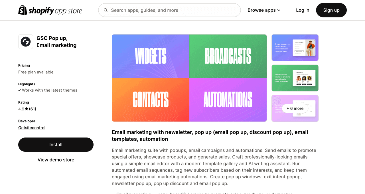 Originally a pop-up builder, Getsitecontrol has expanded into a robust email marketing suite for Shopify. It tackles the hardest stage — email list building — with advanced forms and on-page visitor targeting, then helps you convert subscribers into buyers with promo emails, automations, and tagging.