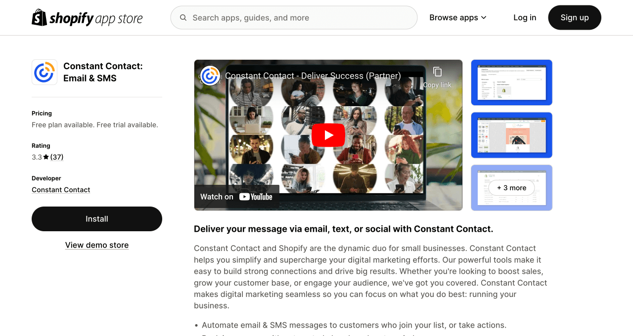 | Constant Contact | Social media integration | Paid plans from $12/month | 60-day free trial |