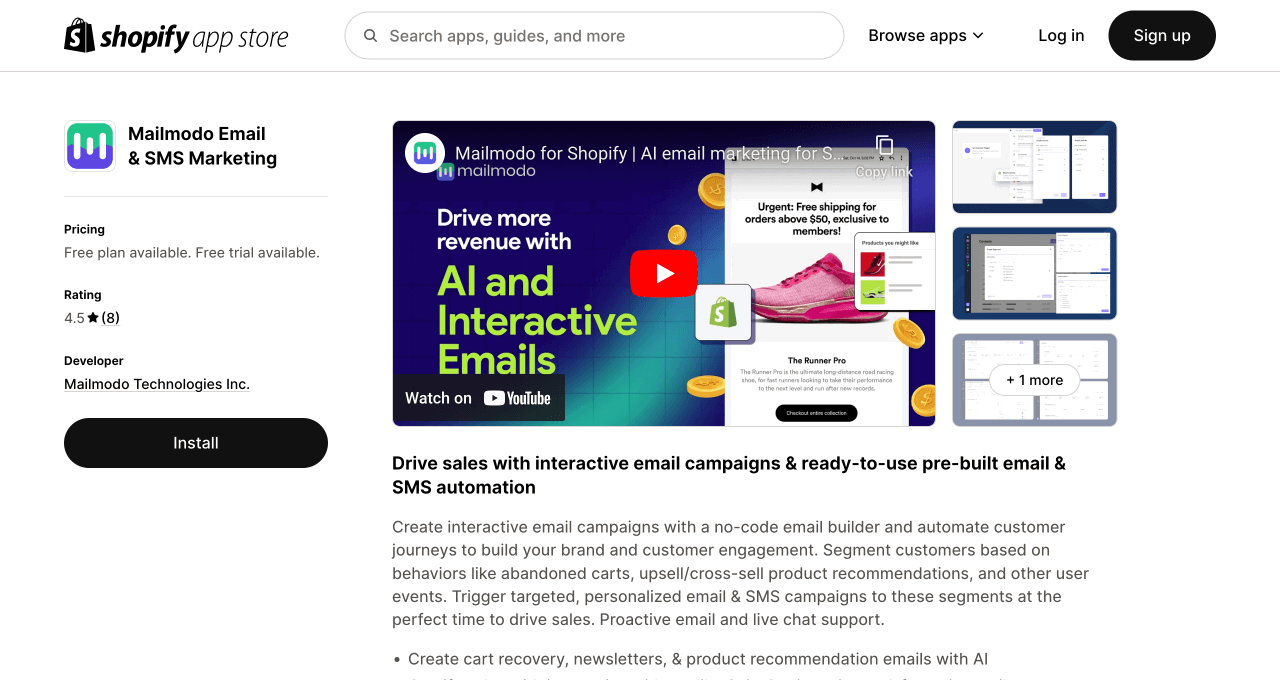 Mailmodo is a fan-favorite EMS known for its interactive AMP emails. Its dynamic elements — from registration forms and quizzes to carousels and emoji ratings — work on all major email clients, making it an obvious choice for Shopify users who want to speed ahead to conversions.