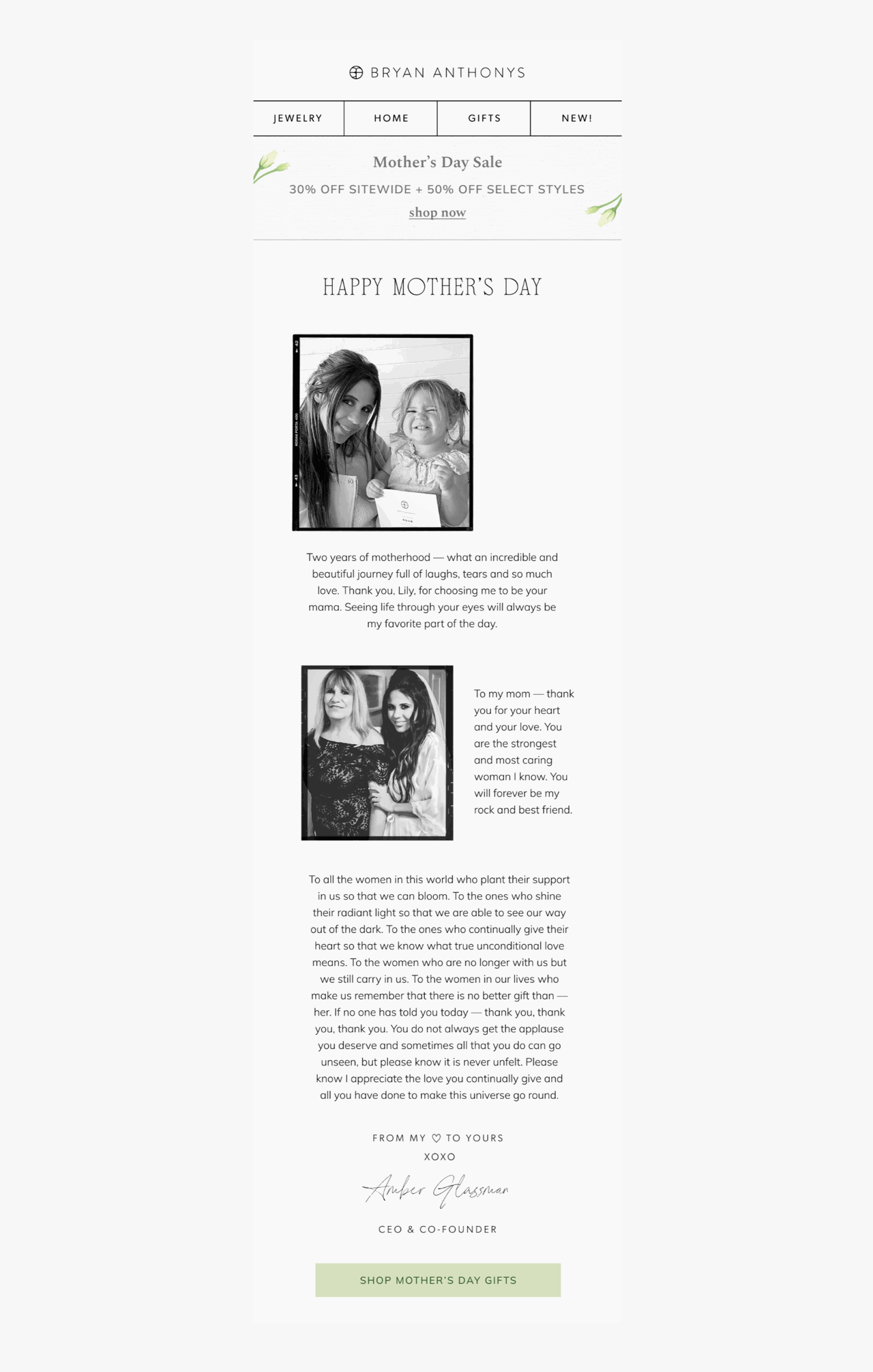 Personal notes aren’t necessarily designed to drive sales, but when done right, their impact can be profound. Mother’s Day email campaigns are a beautiful opportunity for founders who want to nurture their relationship with customers to establish a deeper connection.