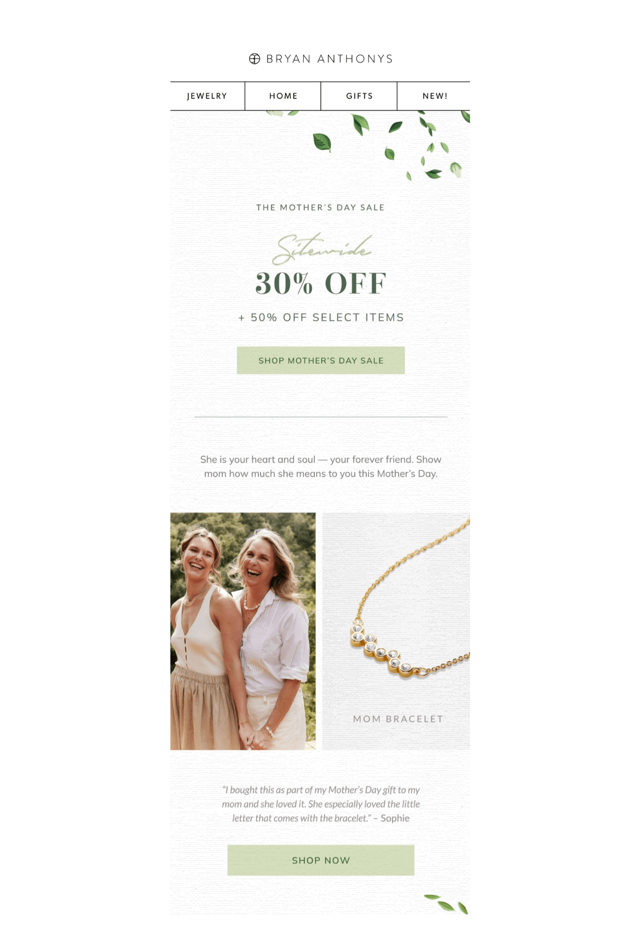 With that said, the content of Mother’s Day jewelry campaigns often revolves around seven core types of emails: