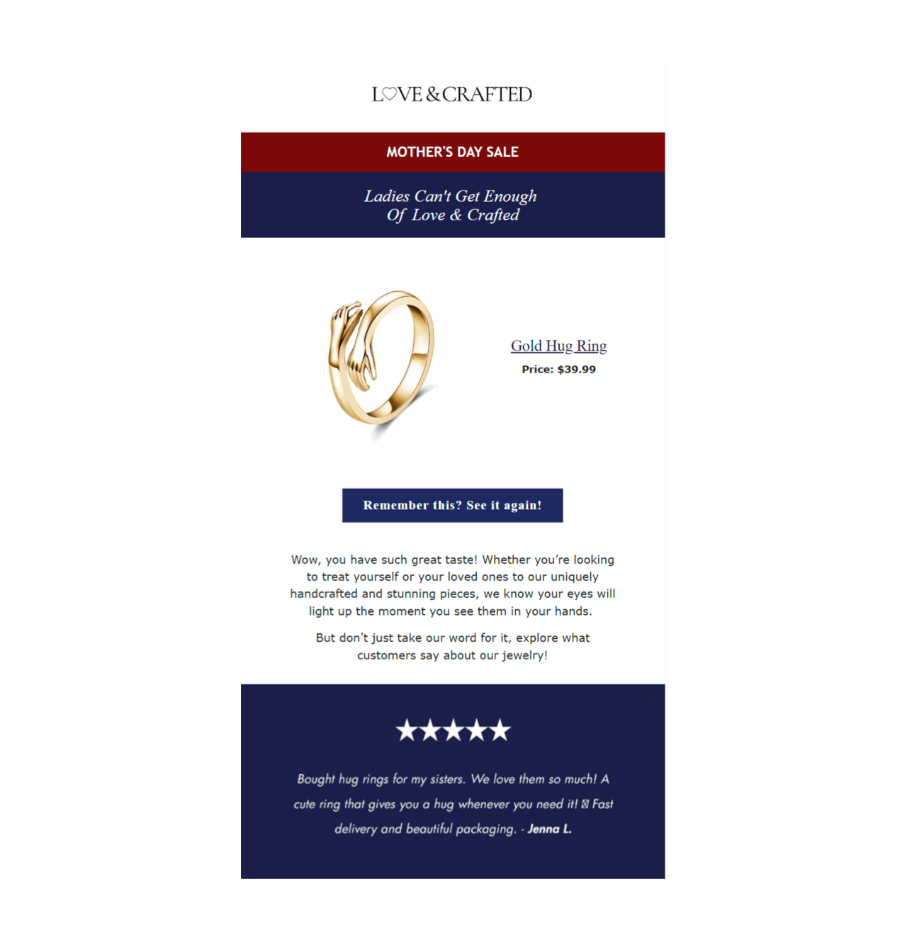 For example, I had clicked on this ring in one of the emails from Love & Crafted and later received this reminder in my inbox: