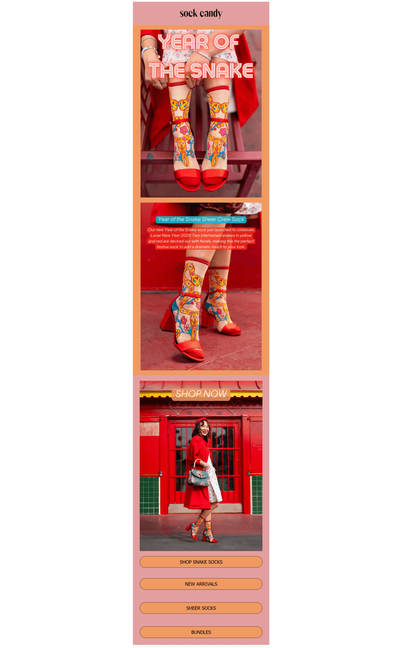 Another noteworthy example is brought by Sock Candy, a women’s fashion sock company. The brand has added a new seasonal design to the collection and used different photo angles to present it to the customers.