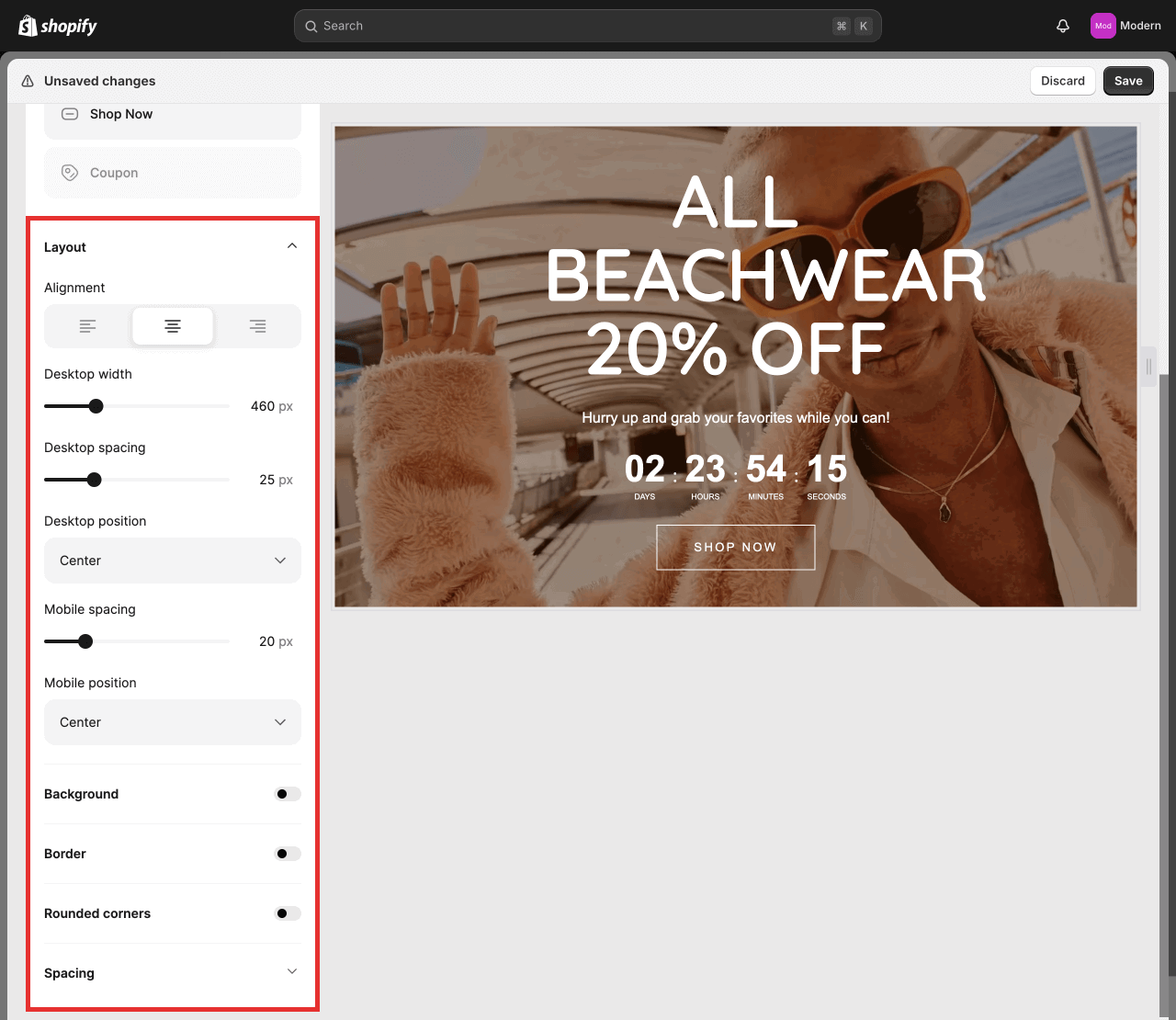 Save the changes in the theme editor, and the setup of your Shopify countdown timer is complete.