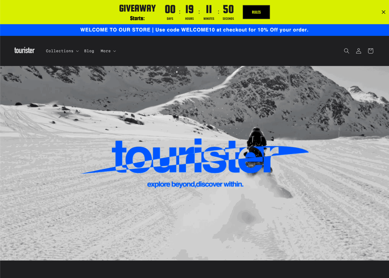 This timer bar creates hype for an upcoming giveaway, so the button on the bar leads to the giveaway rules. By consistently displaying the timer across various store pages, Tourister maximizes visibility, ensuring that both loyal customers and casual passers-by are aware of the event.