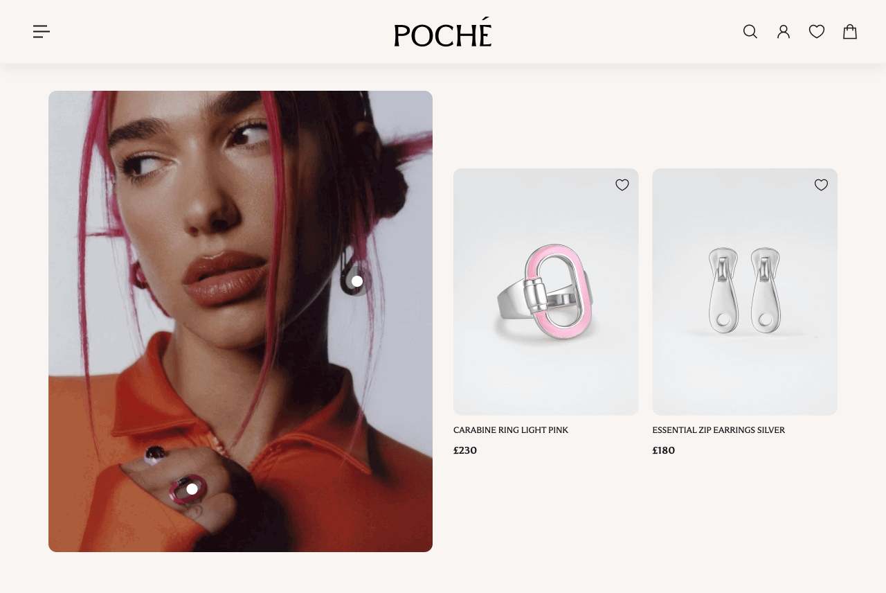 A classic lookbook showcases the bestsellers, providing a segway into a shopping journey. Note that despite the bold aesthetics, the store design remains minimalistic, allowing the focus to stay on the jewelry. Contrasting sections and a split-screen video on the homepage highlight their products effectively. This dynamic presentation ensures that each piece gets the attention it deserves, enticing customers to explore further.