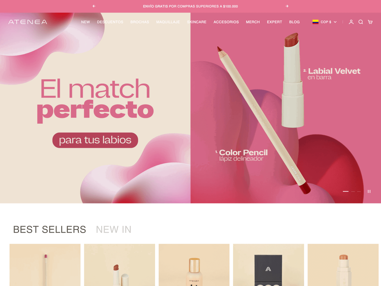 Atenea is a standout example of a beauty store using Stretch for its website.