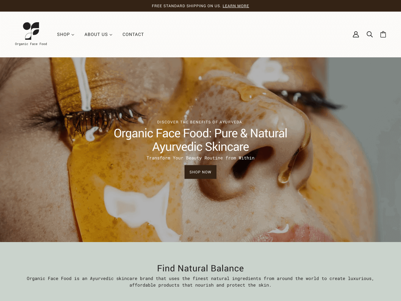 Visit Organic Face Food, a skincare brand using natural ingredients, to see the Beyond theme in action.