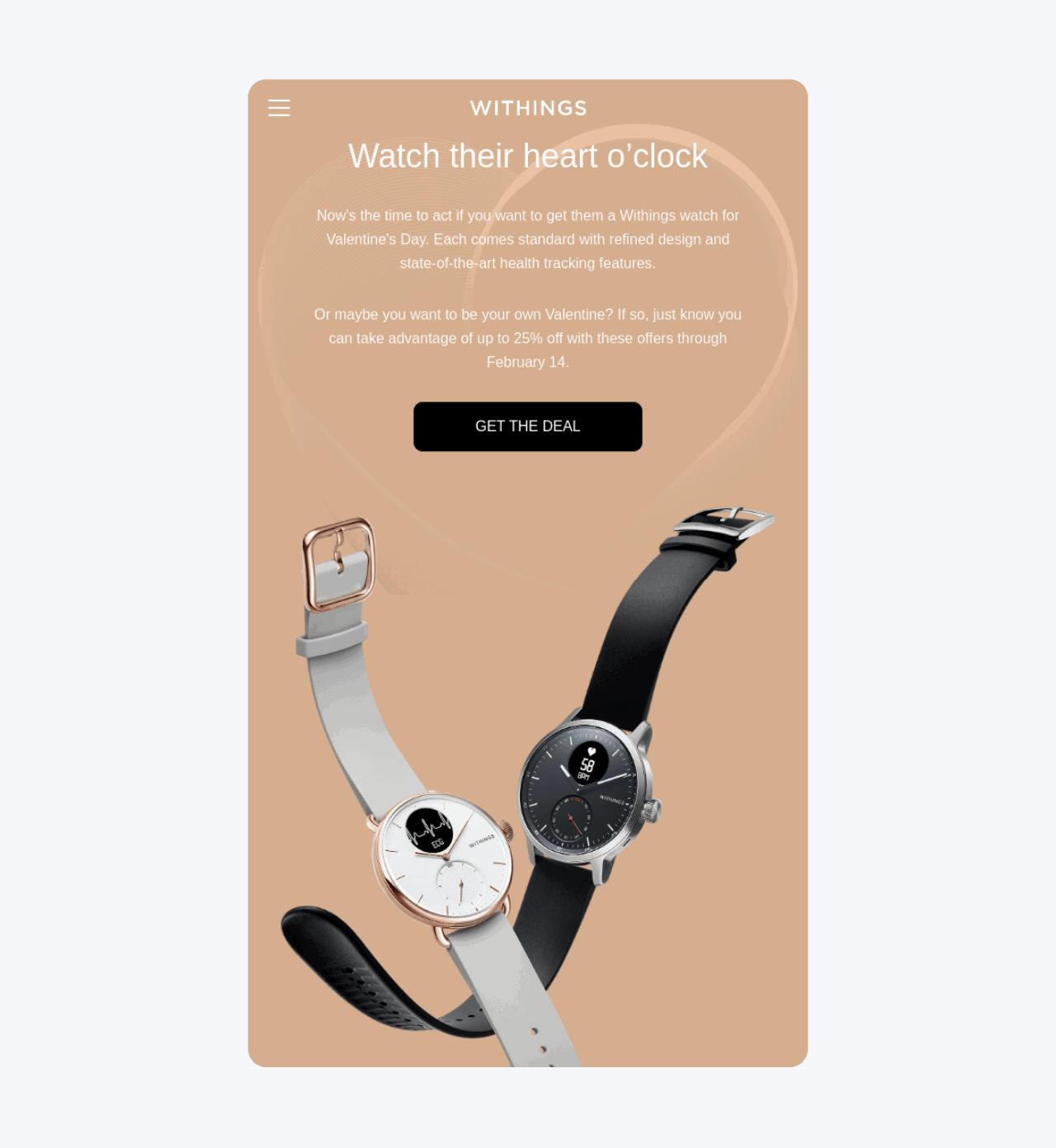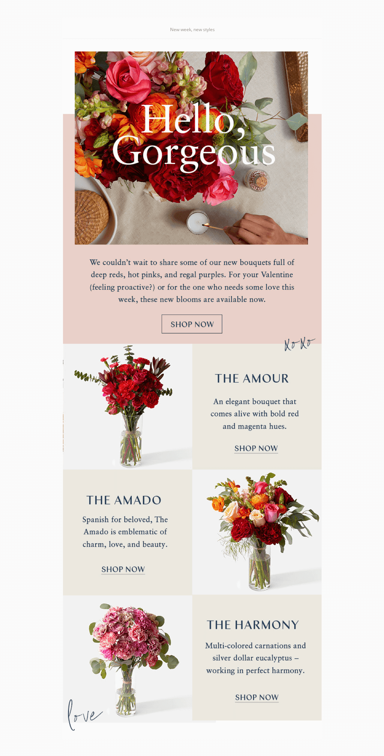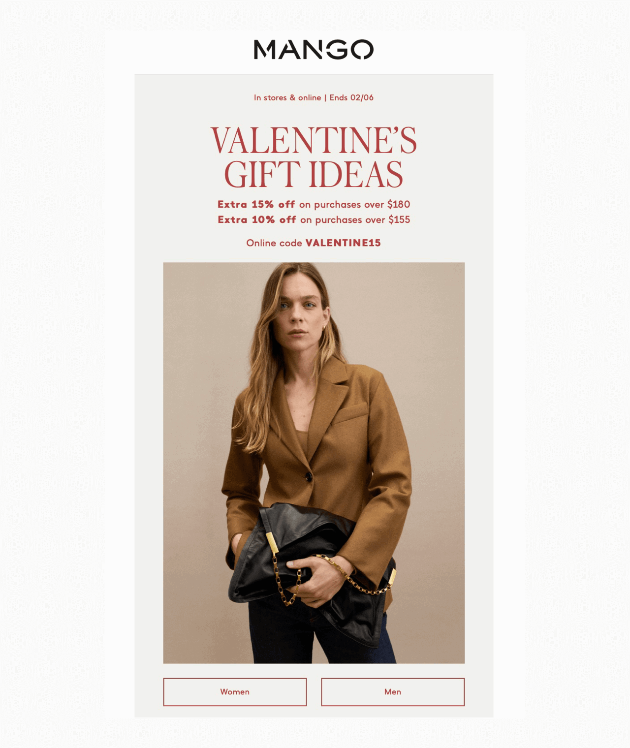 In these emails, you can go more in-depth about your Valentine’s Day offers. For example, you can feature a list of best-selling gifts or send product recommendations based on the links a person clicked.