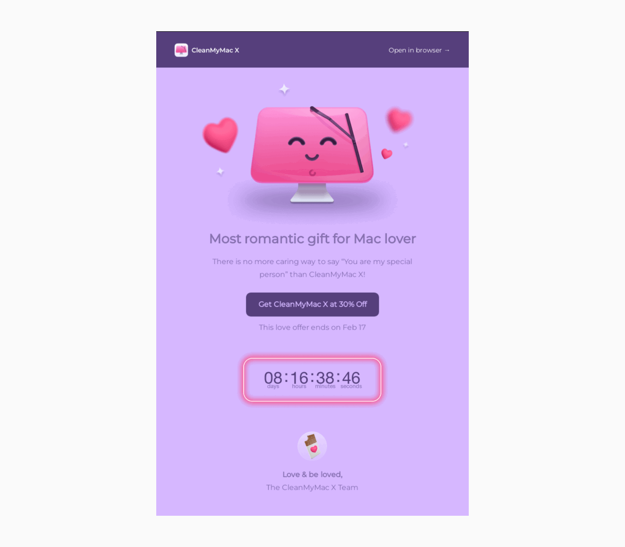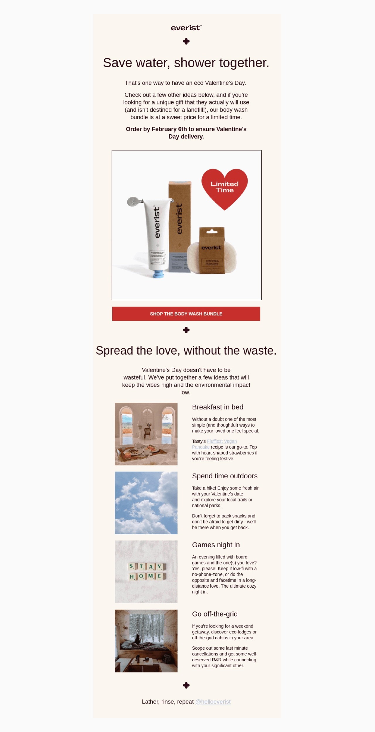 Make your St. Valentine’s Day email marketing campaigns about the shared love between your customers and their plus-ones (and the benefits they will experience after the purchase).