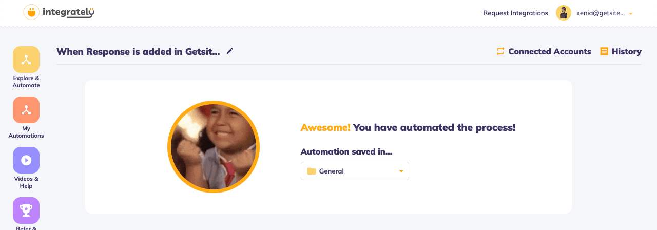 Success! While your automation is on, the data will be automatically sent to the selected app.