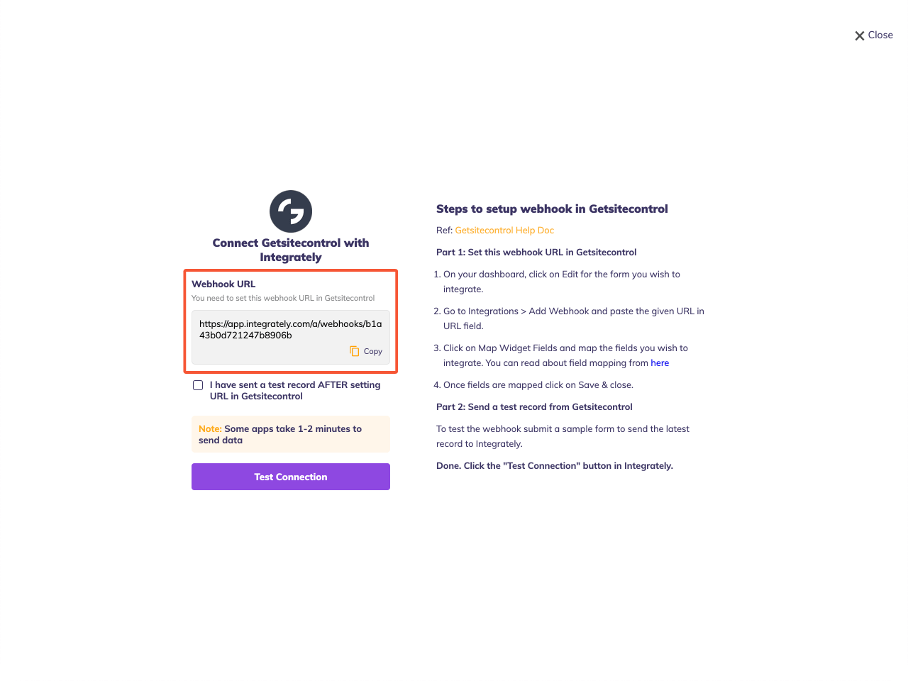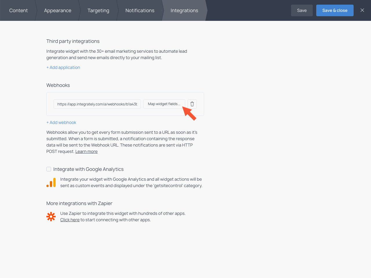 Map your widget fields to your app’s fields to make sure the data Getsitecontrol sends is handled correctly. You can learn more about field mapping here.