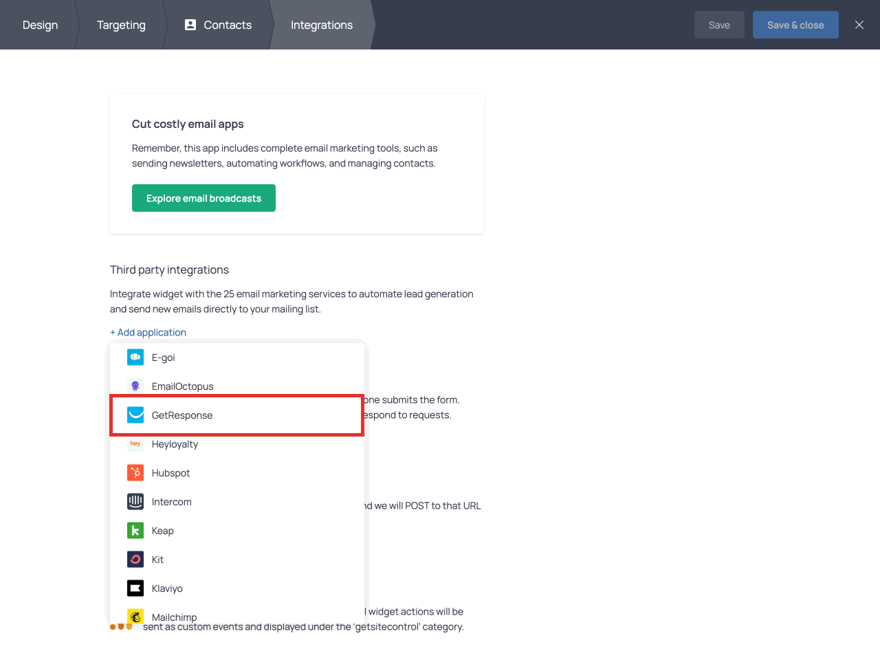 How to integrate widgets with GetResponse