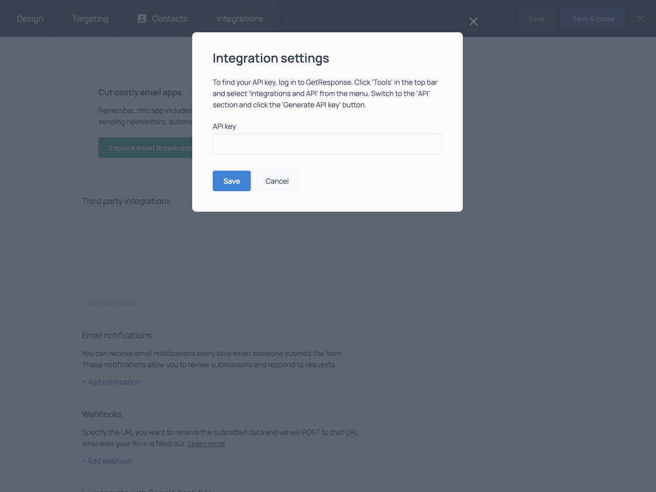 Next, enter your GetResponse API key.