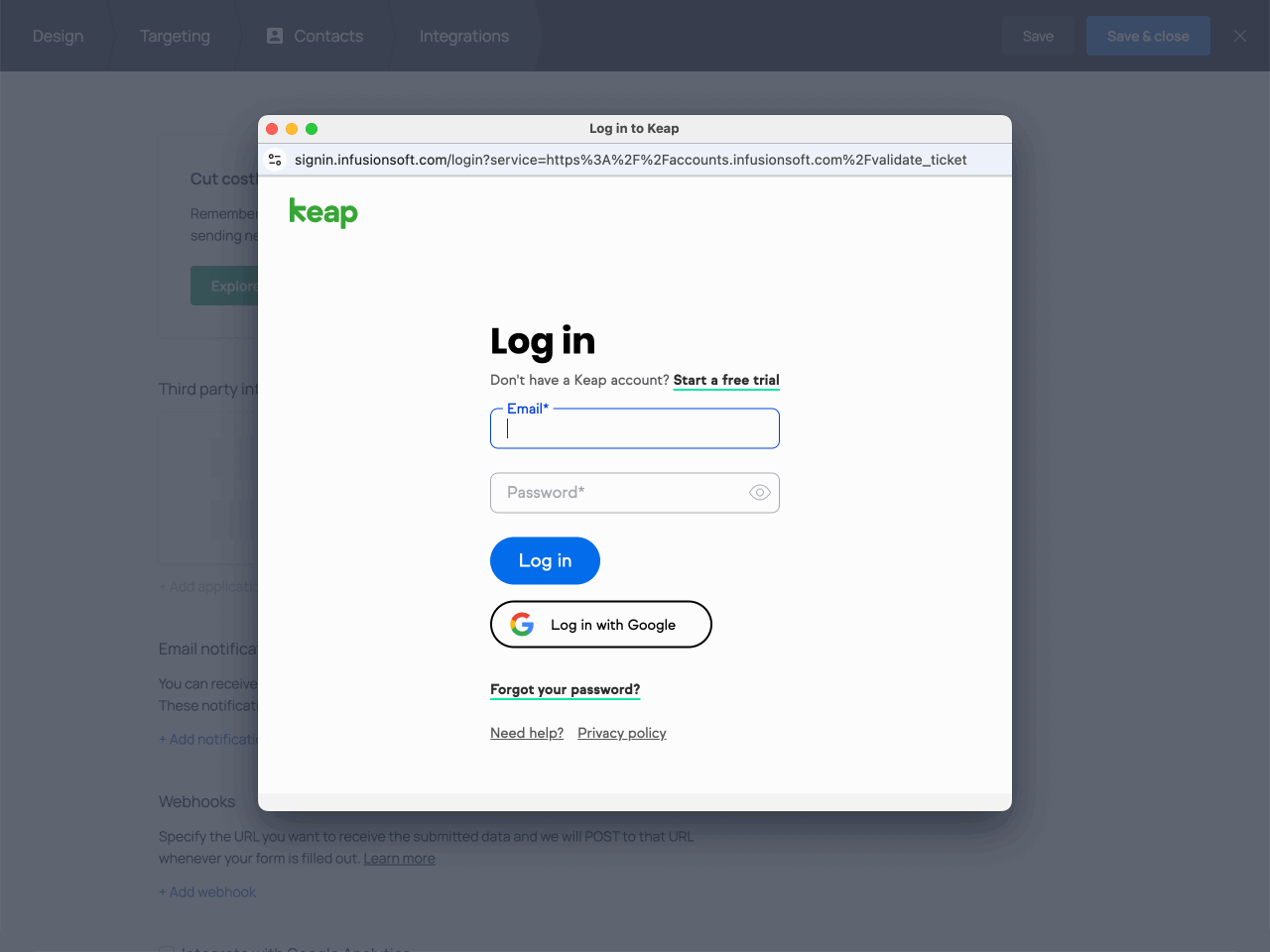 Next, enter your Keap account email and password.