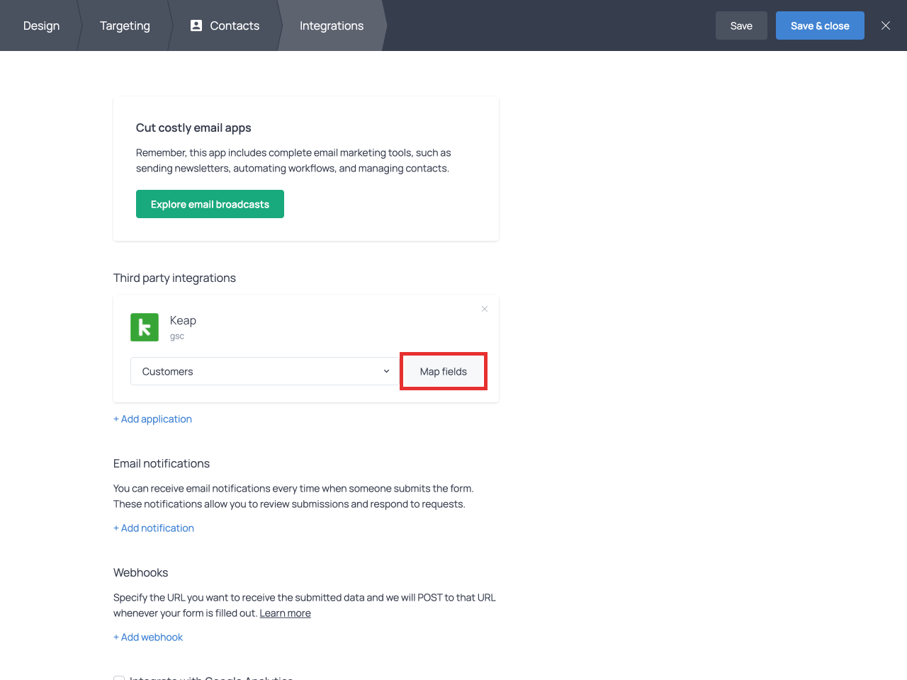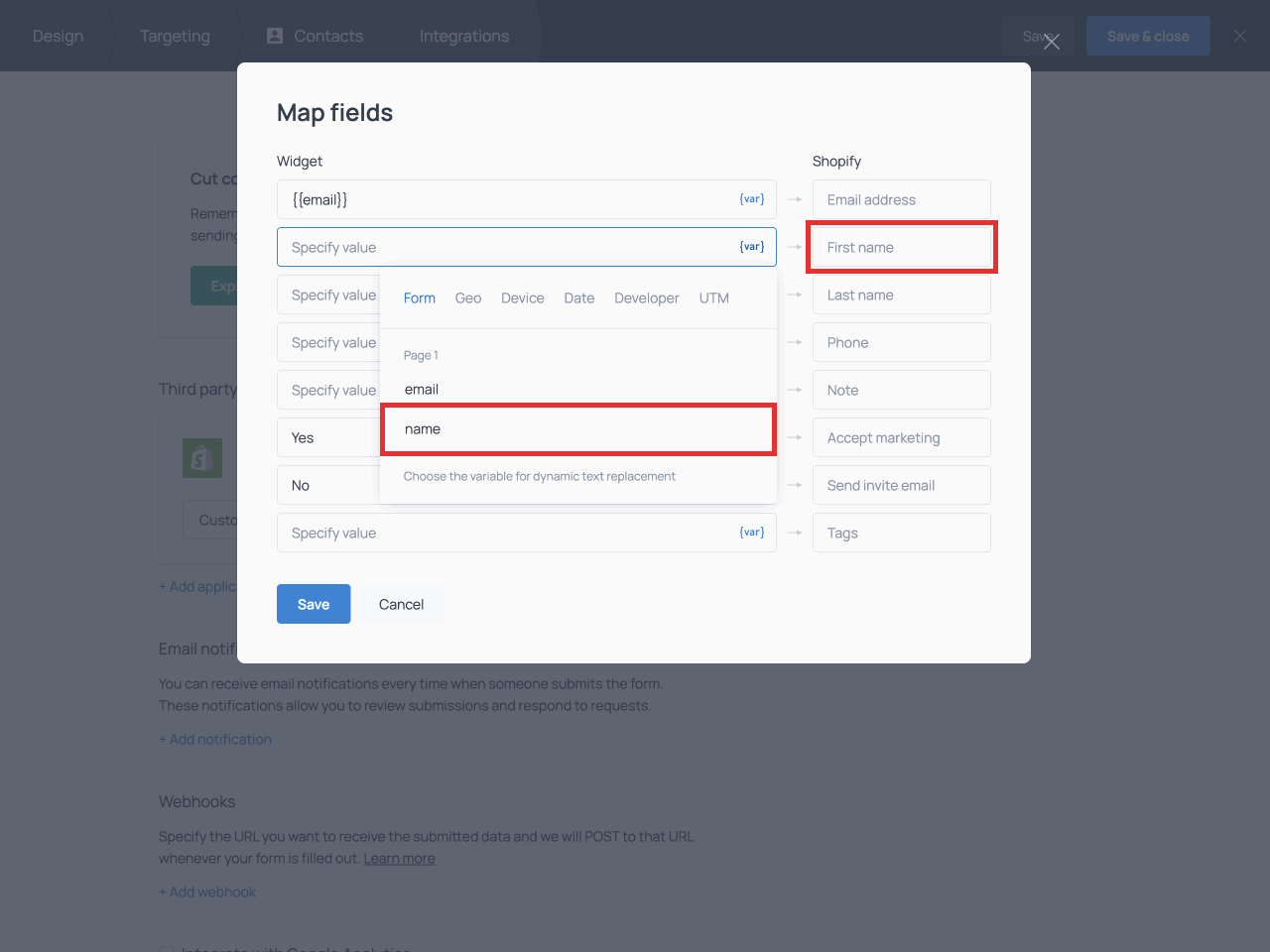 When you are done mapping the fields, click Save and proceed to Save & close the form.