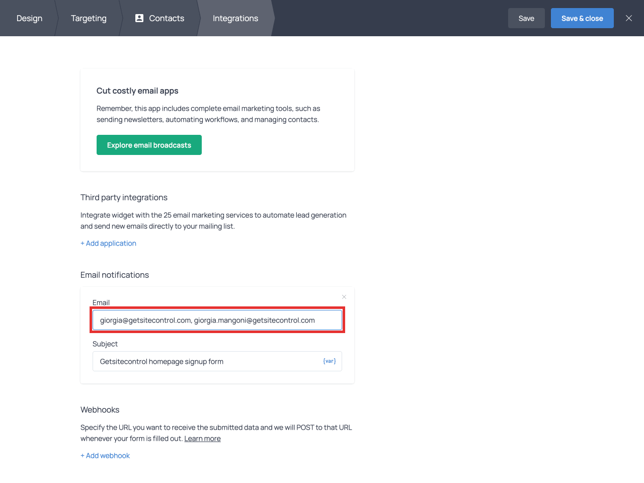 That’s it! Now you’ll receive an email notification each time someone submits the form.